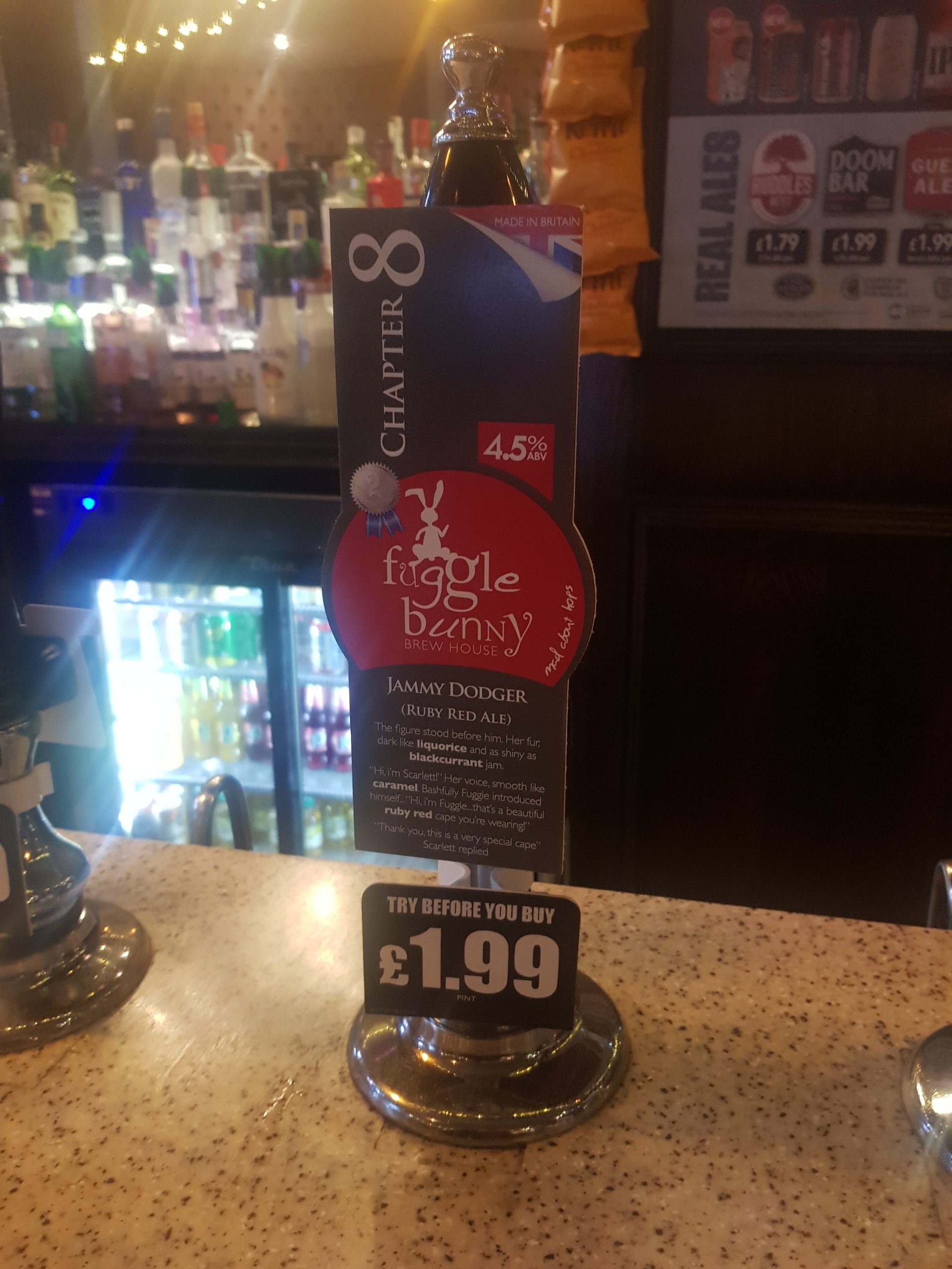 The pub didn’t have any dark beers, but this one seemed an interesting option. The branding of this beer confused me a little, it wasn’t clear to me what Chapter 8 was and the barman was equally unsure, but it seems that the beer name was the Jammy Dodger and the brewery is Fuggle Bunny. The beer was excellent, a sweet taste with some caramel flavours, a very drinkable ale.