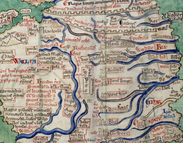 This is a useful web-site, it’s an annotated version of Matthew Paris’s map of Britain, from around 1250. It’s not a bad stab at the geography of the country, with Paris being a monk who worked from St. Alban’s Abbey in Hertfordshire.