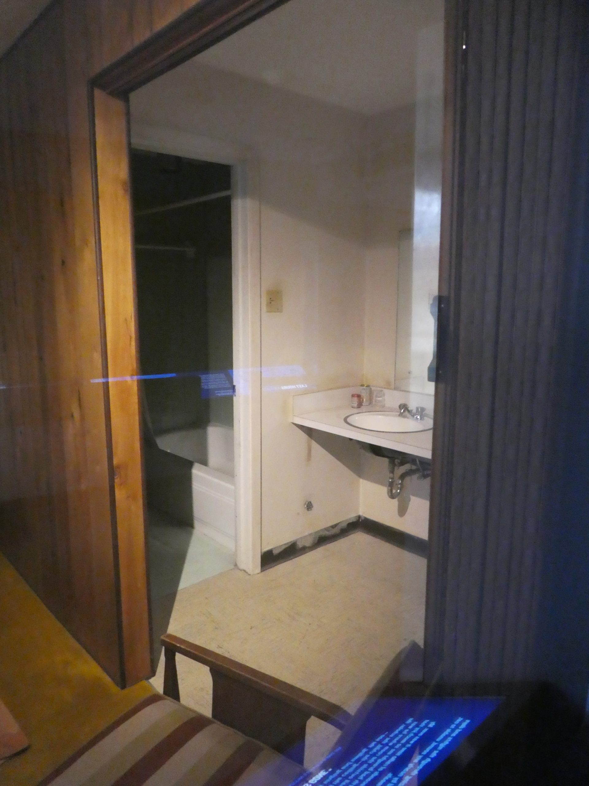 The bathroom of room 306. The plexiglass that has been used is quite unforgiving when taking photographs and it’s hard not to get reflections.