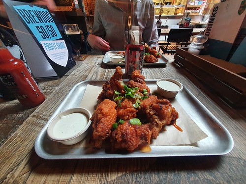 James can eat more than I can, he’s nearly to 40 than I am (in terms of chicken wings consumed, not age), but they’re delicious, although that sauce is a little vinegary so it soon becomes quite challenging to eat them. We managed to persist for a couple of hours though, with the service being a little sluggish at first although it then picked up and extra wings came flying our way (there’s a pun there) at some pace. They were generous in letting us have two blue cheese sauces, they really something to the chicken wings, mainly by hiding the vinegar taste which is in the sauce.