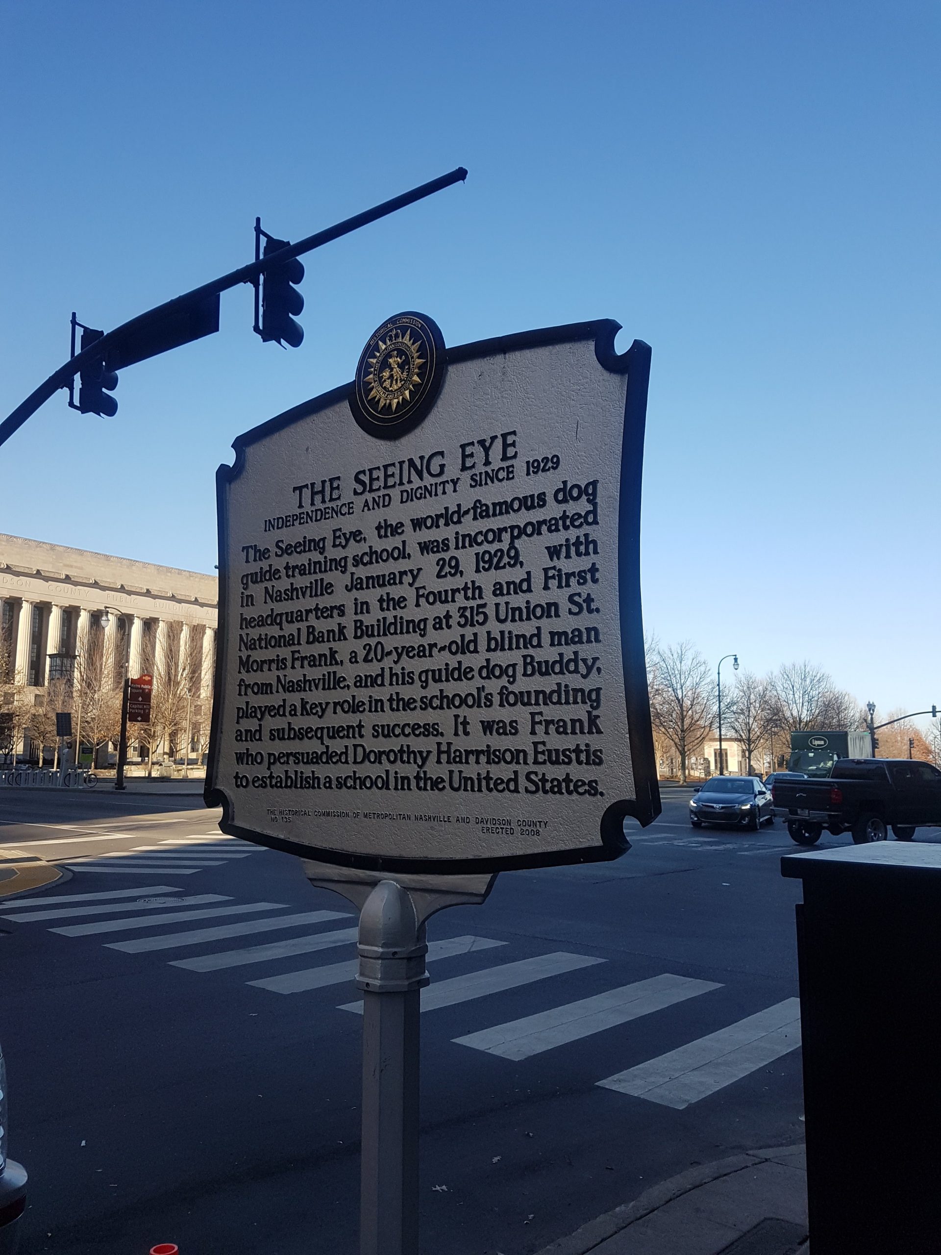 Nashville is where The Seeing Eye guide dog organisation started from in January 1929, the first in the United States. Dorothy Harrison Eustis was a Swiss resident, although had been born in America, who had bred German shepherd dogs for police use and it was discovered that they could help the German war veterans who had lose eyesight during the First World War. In 1927, The Saturday Evening Post wrote an article about her work, which led Nashville resident Morris Frank to write to her and between them they were able to establish The Seeing Eye.