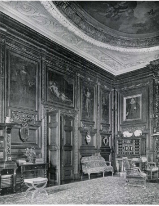 Here’s what the room looked like in 1908. During the Newport Council period, they plonked a bed in the middle of the floor so that people could lie down and look at the ceiling, but the National Trust have gone for a more tried and trusted method of using an angled mirror. They also did well to ensure that this room was kept well maintained when it was a school, although the council did refresh all the gilt decoration during their ownership.