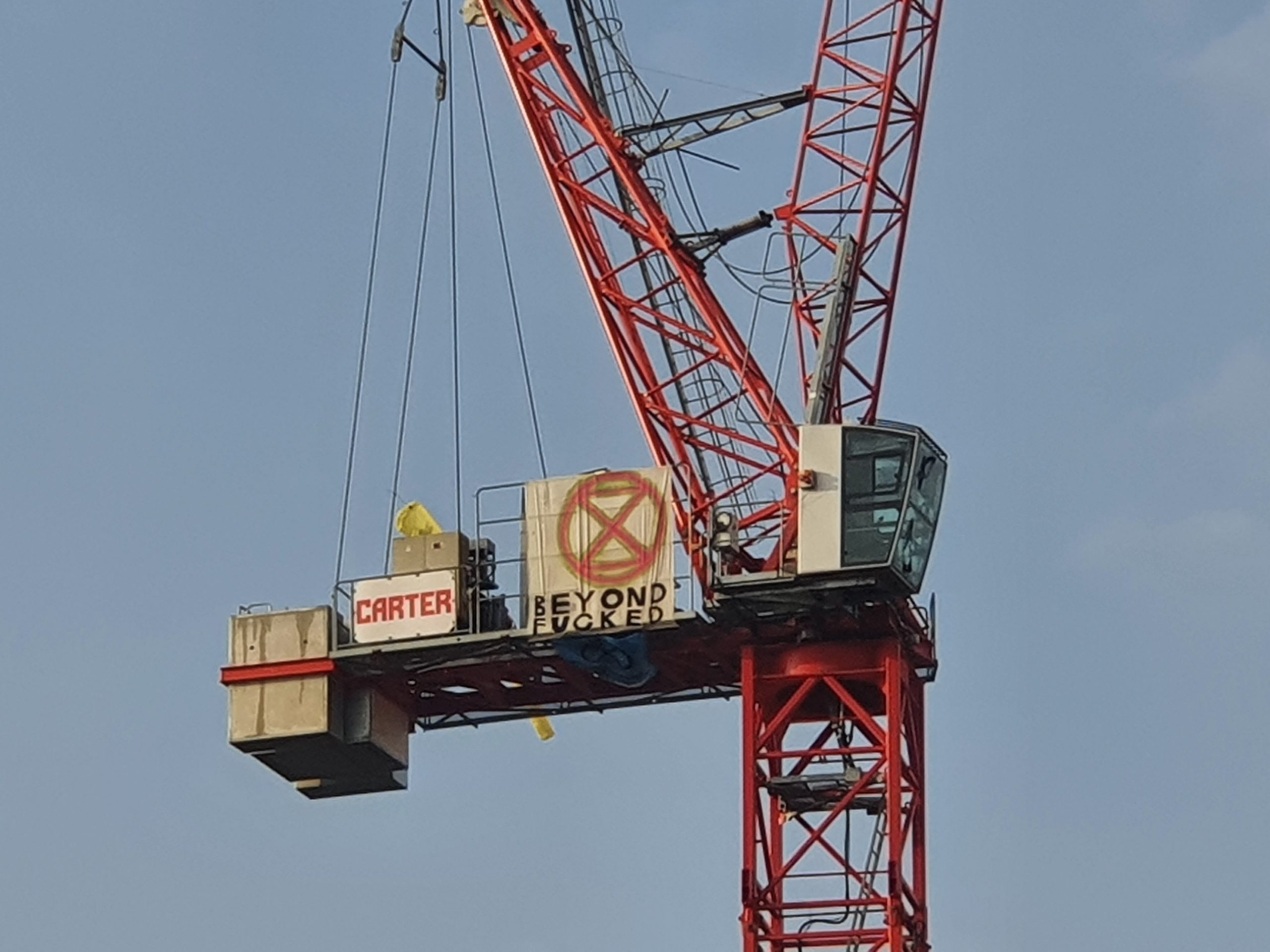 There’s a little protest going on up a crane in Duke Street in Norwich.