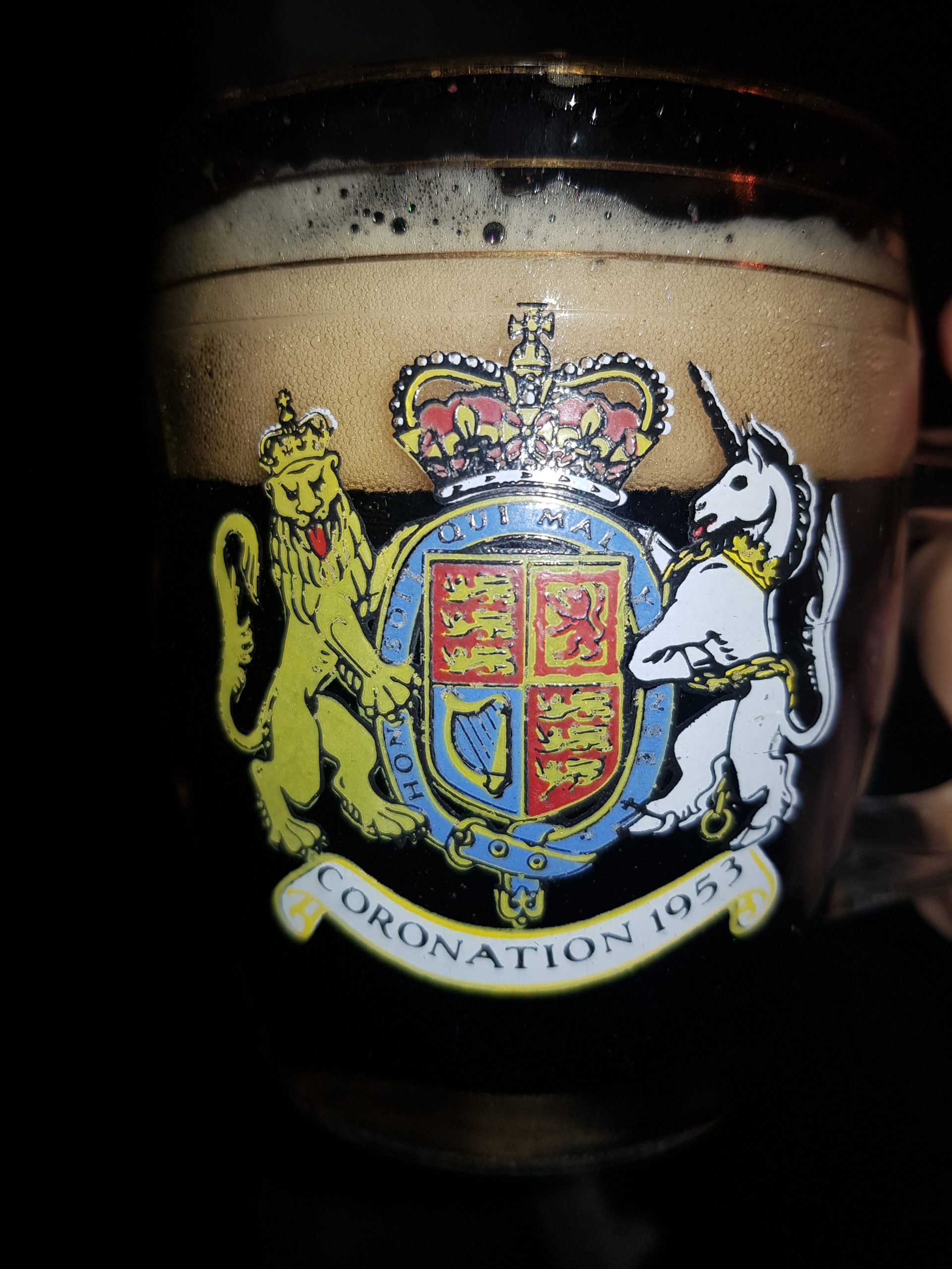 I’m used to being served drinks in old beer festival glasses, but never in a 1953 Coronation glass….