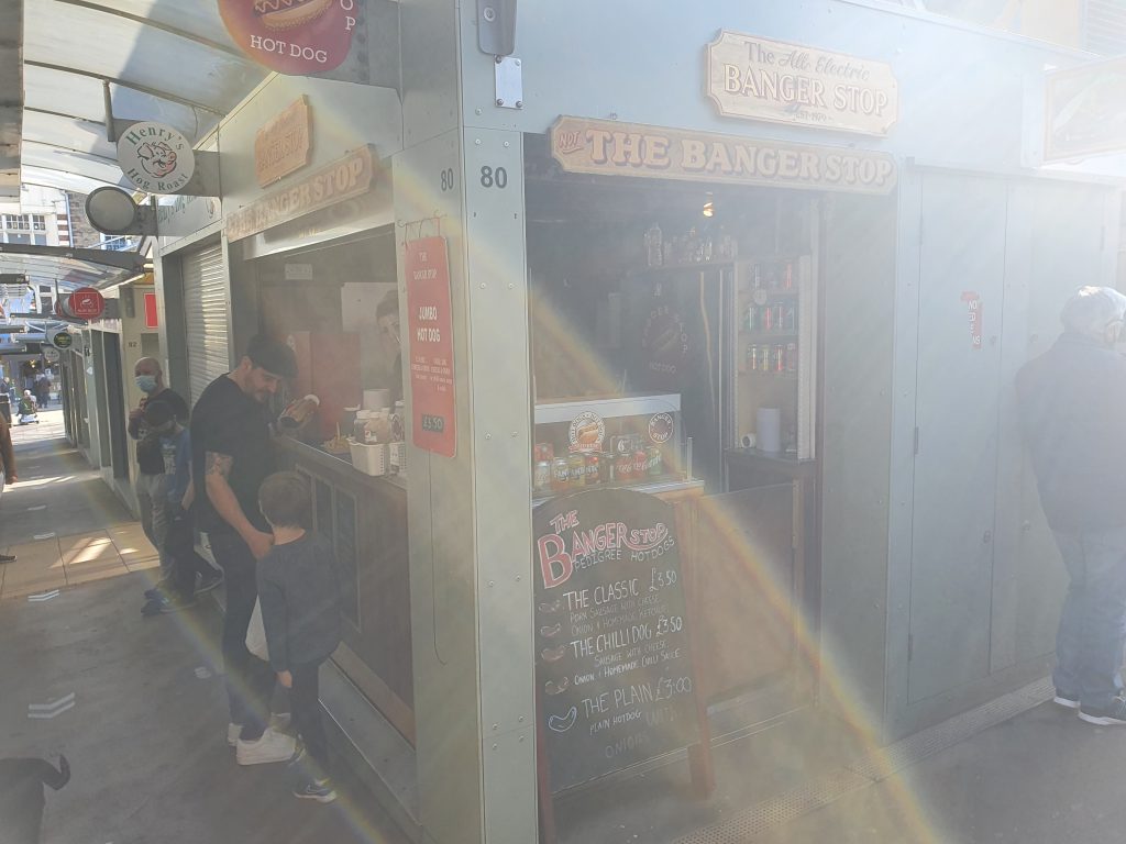 I haven’t paid much attention to Norwich Market in the past, for no obvious reason than I’m not sure I realised how wide a choice of food and drink they had there (to be fair, it’s near Grosvenor and so I hadn’t realised I needed to go elsewhere). Having meandered around the various chip stalls over recent weeks, I thought I’d pop to Banger Stop today.