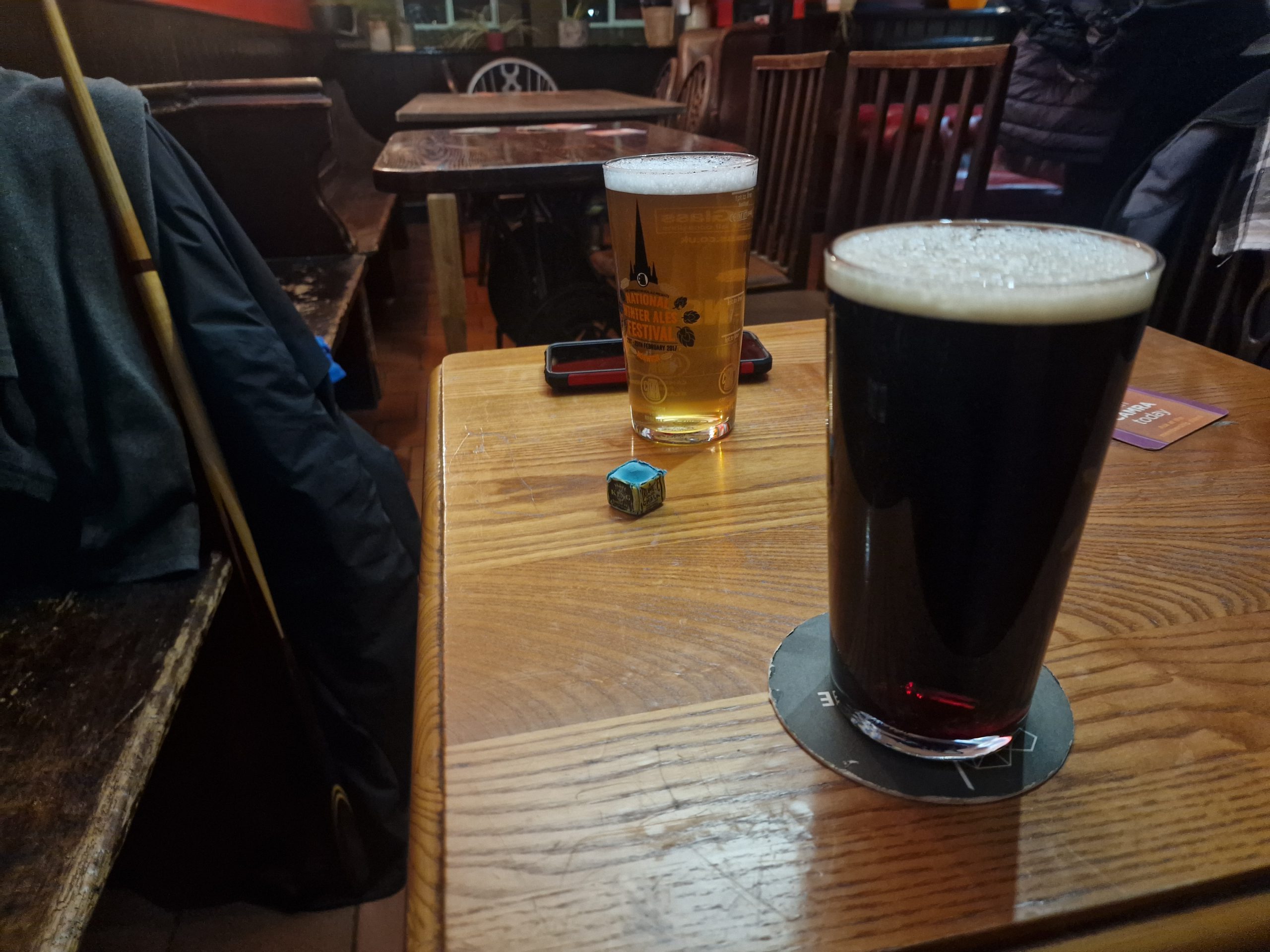 Fortunately I managed to play sufficiently well last night not to be removed from the team, so that’s positive, and I’ve discovered some exciting rules that I didn’t know existed as part of the learning curve. Slightly nervous of the whole arrangement as I’m entirely uncompetitive (as I usually lose) it transpired to be even more exciting than I had hoped for during the sort of training session we had. I was aided with the support from the cheap seats (as opposed to the higher seats which have a premium view of the table) in the pub of Julian, which gave us the chance to debate our pubs excursion to North Walsham later today. Anyway, my first match next week against the International Brigade at the King’s Head. I’m looking forwards to the food and I’ve got an aim to score at least 800 in every match as a target, as well as a set of things that I need to practice, so that’s several games this weekend needed….