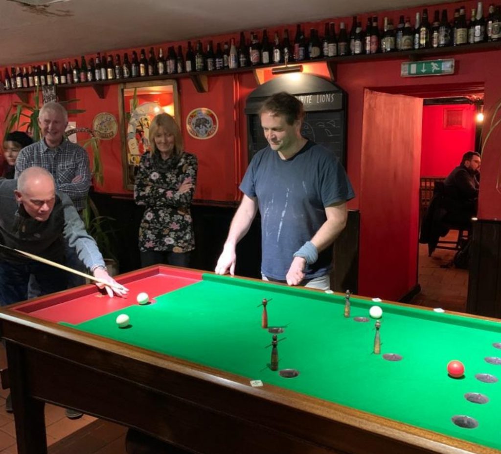 Here’s a photo of me from last year (NB, that isn’t a fashion item around my wrist, it was my face covering which I wasn’t sure where to put, although perhaps over my face would have been sensible) when I put myself in charge of refereeing a Legstretchers bar billiards tournament, although I probably remembered half the rules incorrectly. Anyway, I’ve joined a team this year, the White Lion Manes, although I’m more engaged with the food than the bar billiards bit. The league, slightly oddly referring to us as the White Lions Manes which poses me some grammatical issues, is at https://www.norwichbarbilliards.co.uk/League and I might get away with gossiping our team until someone happens to read up about what I’ve been writing and I’ll have to calm myself.
