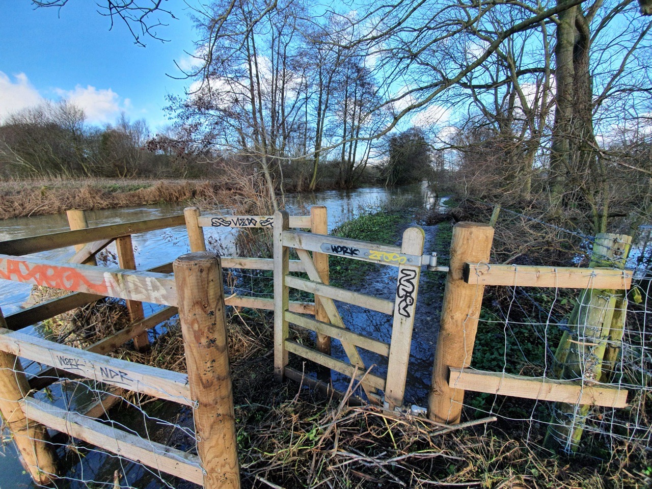Normally it’s possible to walk across this field, which connects back into Whitlingham Lane. We were able to walk some of it, but it had only just opened up as there was a closure order marked up which had just expired.