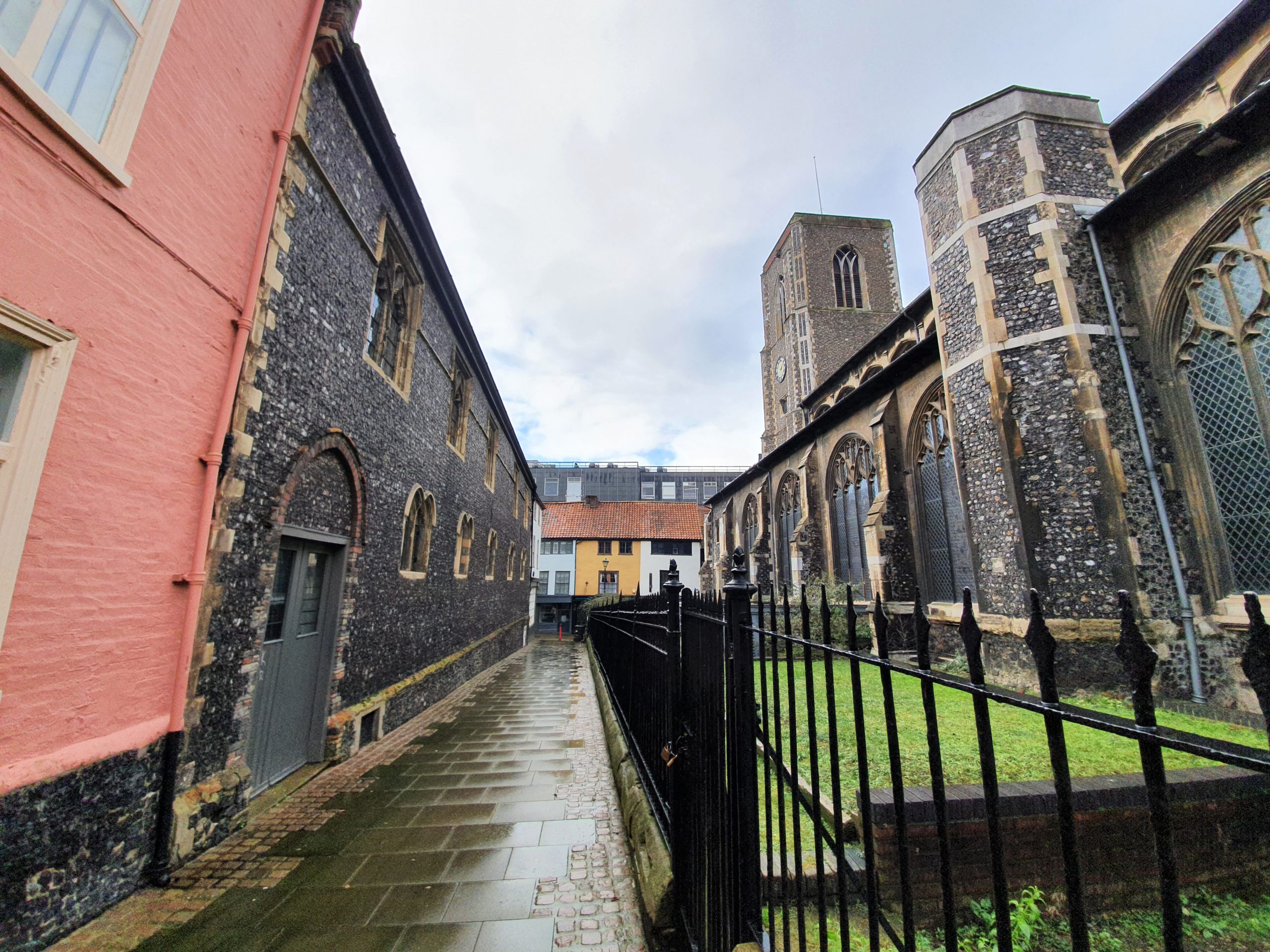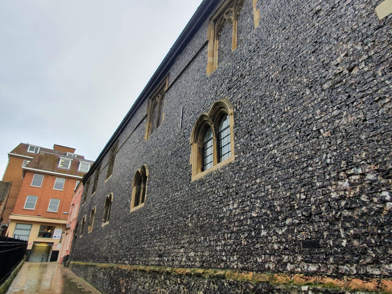 OK, this is just a flint wall on the north side of Bridewell Museum, but it has gained a reputation for being one of the finest walls of its type in the country. And I think that deserves a blog post all of its own….