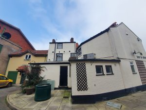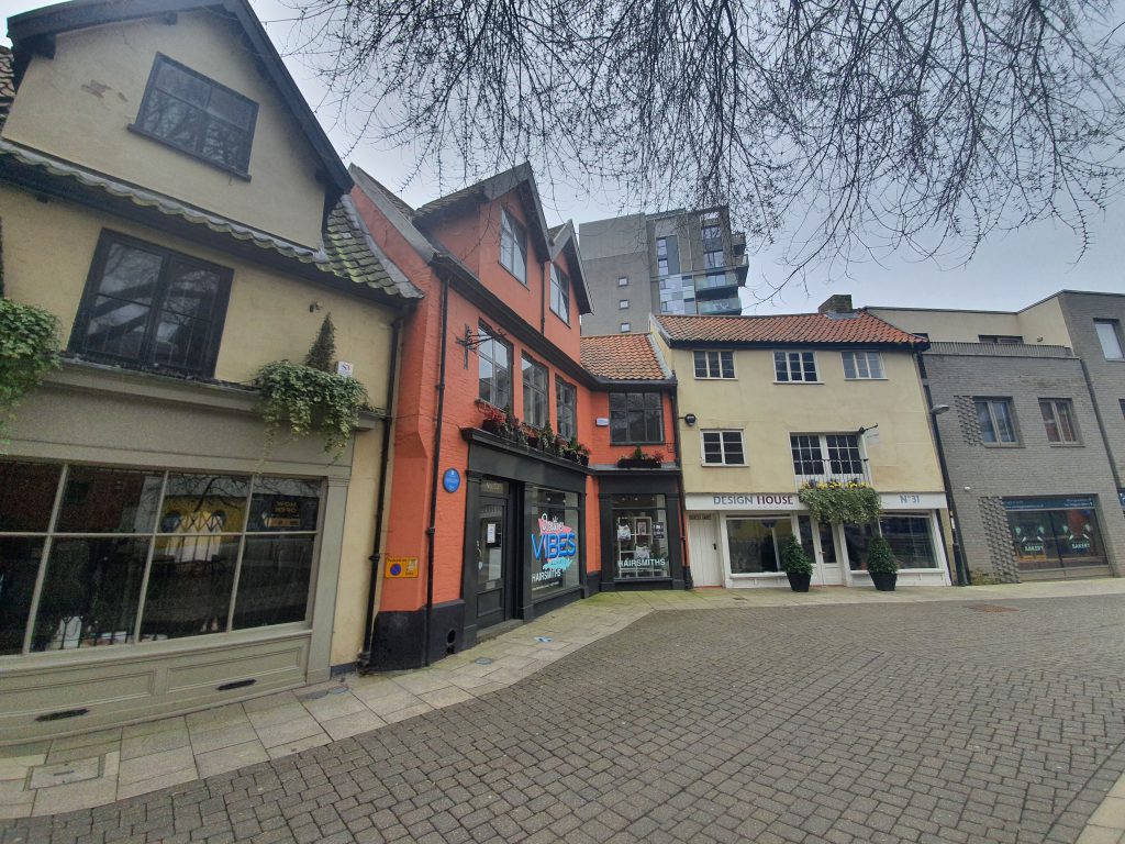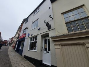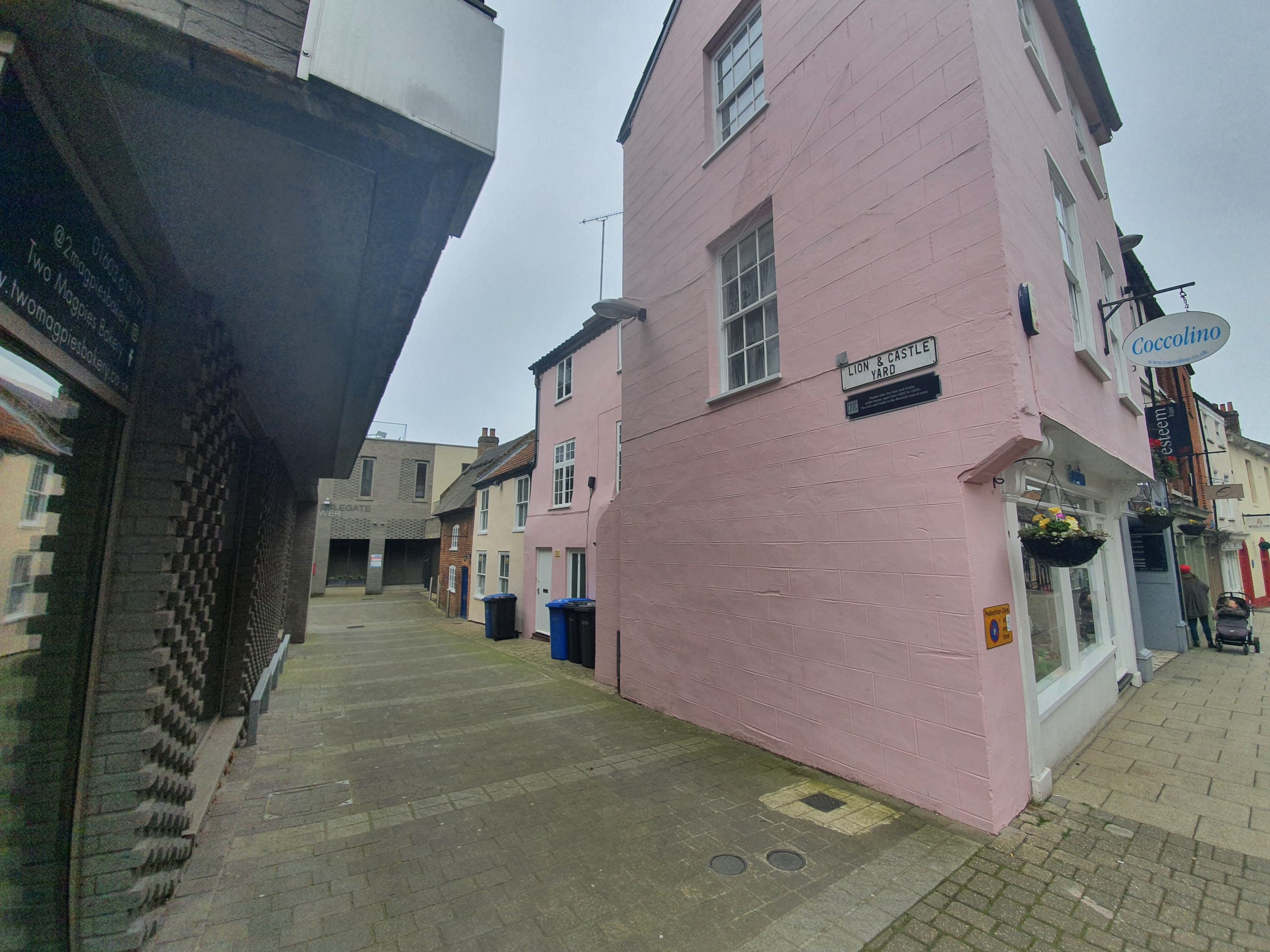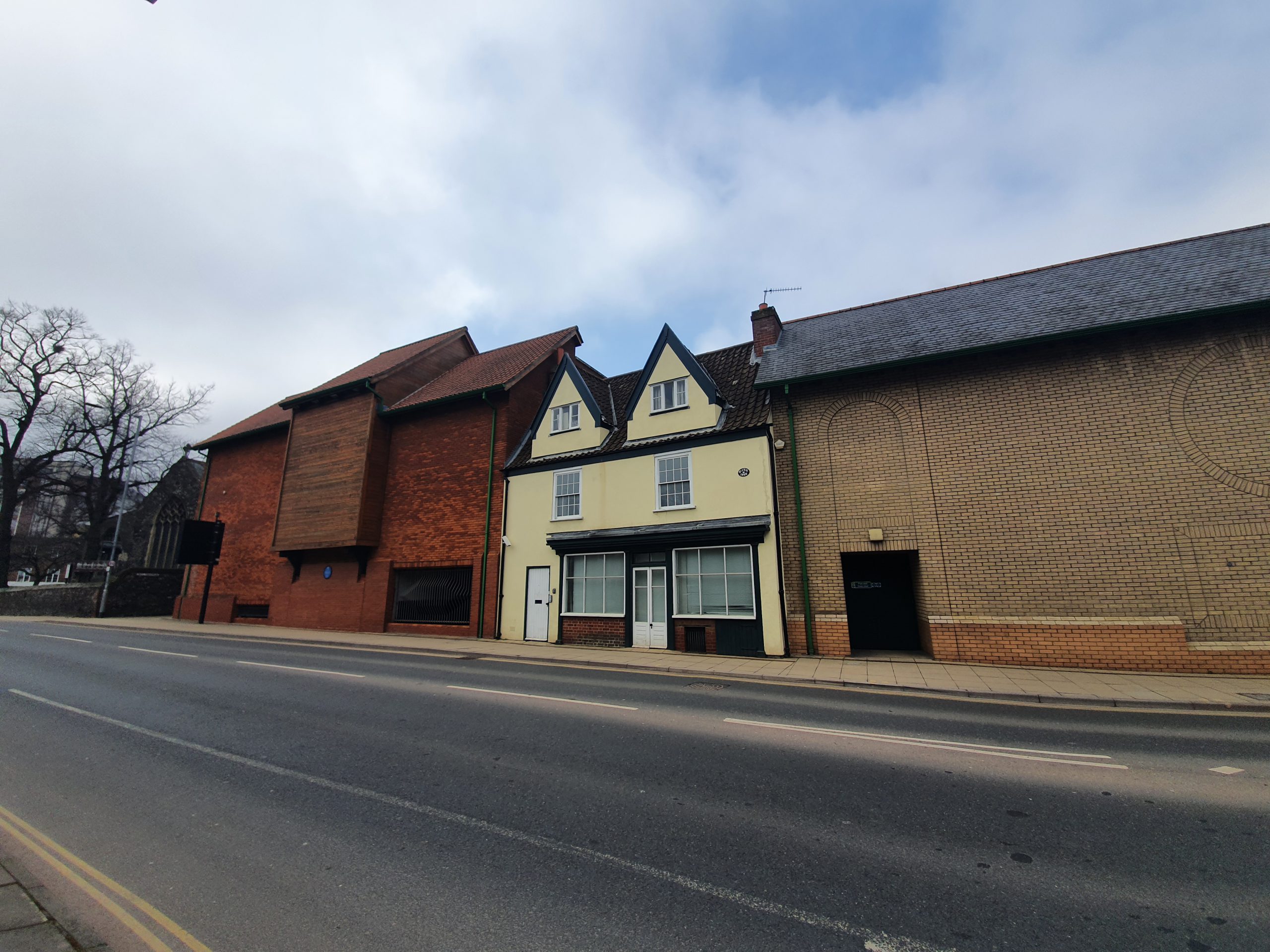 The parish boundary stops about here somewhere where it meets St. Michael at Thorn parish. The back of these buildings on Ber Street would have once been yards which stretched back some distance, but this has all gone now, and that’s the back of the Archant building at the rear.