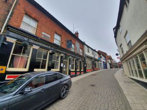 This is the only remaining older section of this road, with what was Number 12 at the rear, a now permanently closed restaurant that was located in a building with parts remaining from the seventeenth century.