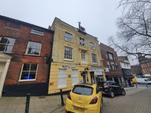 The Bell Hotel from the Orford Street side. This large building is no longer a hotel and is operated as a JD Wetherspoon pub and is one of their first in the country to have opened outside of London. Sections of the structure remain from the fifteenth century and it has been known as the Bell (or the Blue Bell) since at least 1696. Revolutionary groups met here in the eighteenth and nineteenth centuries (and frankly, I can think of a few that have met here over the last few years, but that’s a different matter) and it was also used by the American Women’s Army Air Corps during the Second World War.