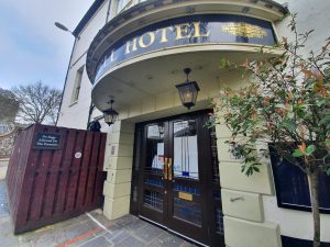 The rather grand entrance, which was formerly the way into the stables of what was then a coaching inn.
