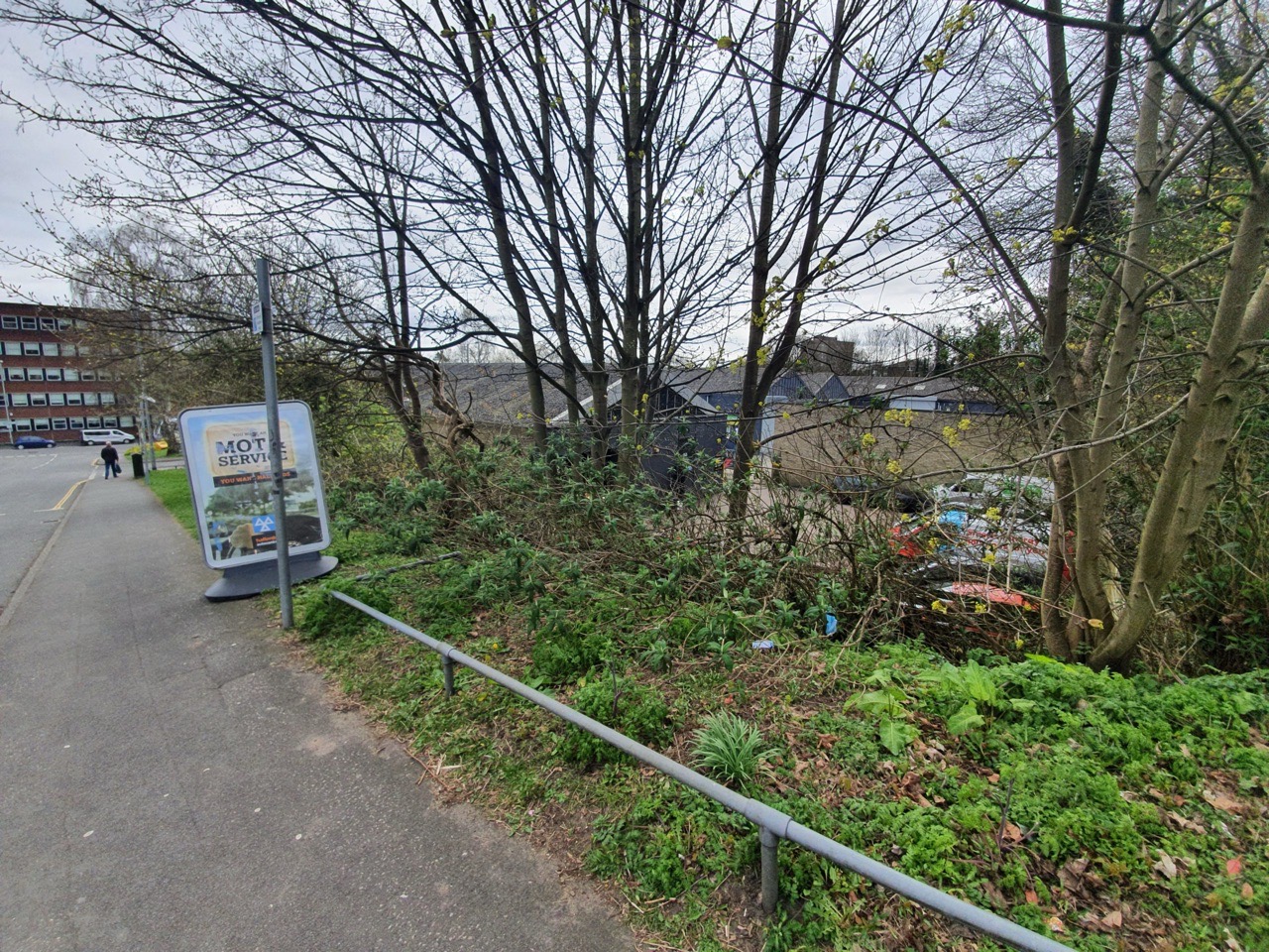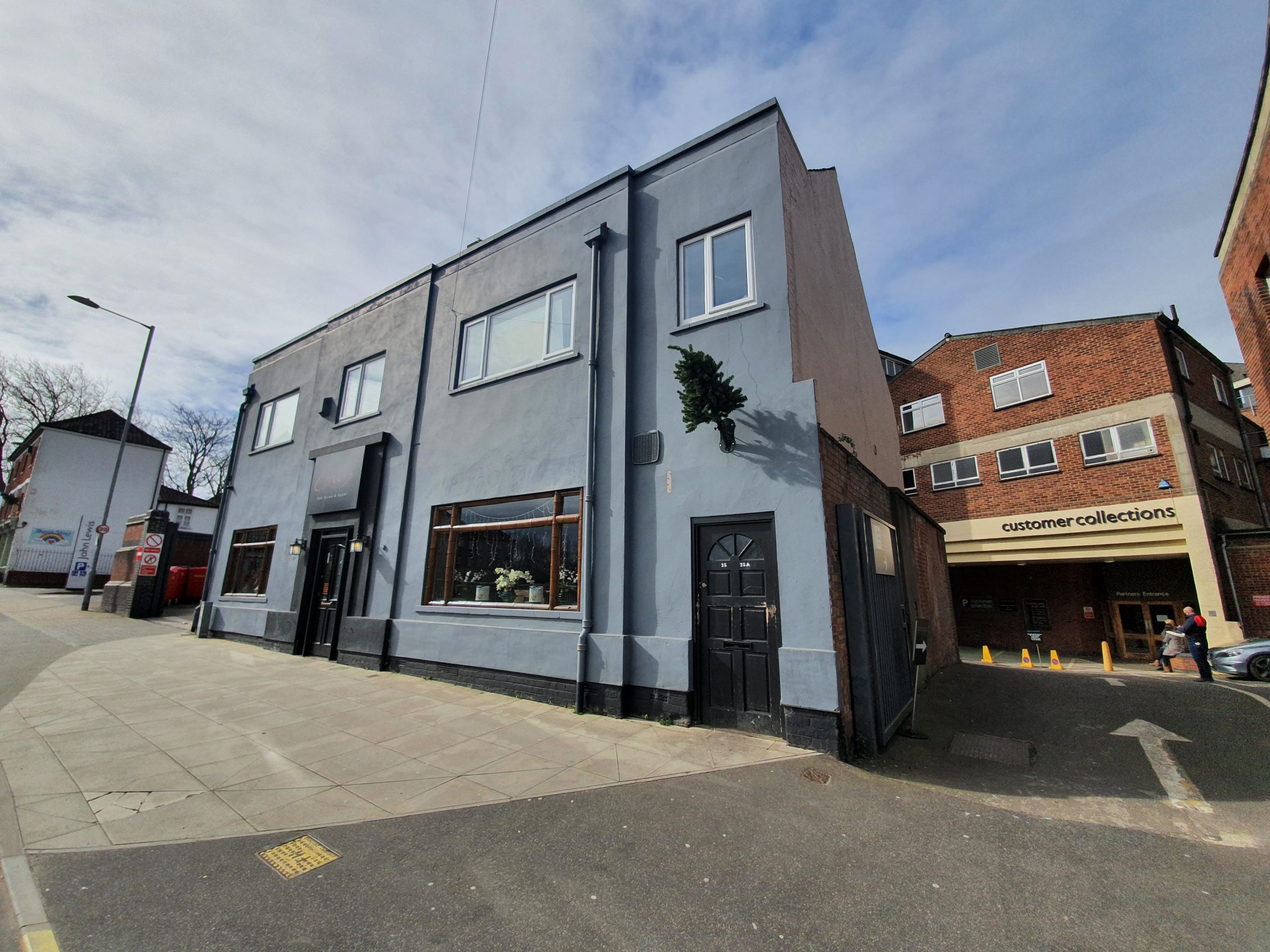 I don’t know why there’s a Christmas tree stuck on the side of this building in April, but this is located opposite the end of Thorn Lane.
