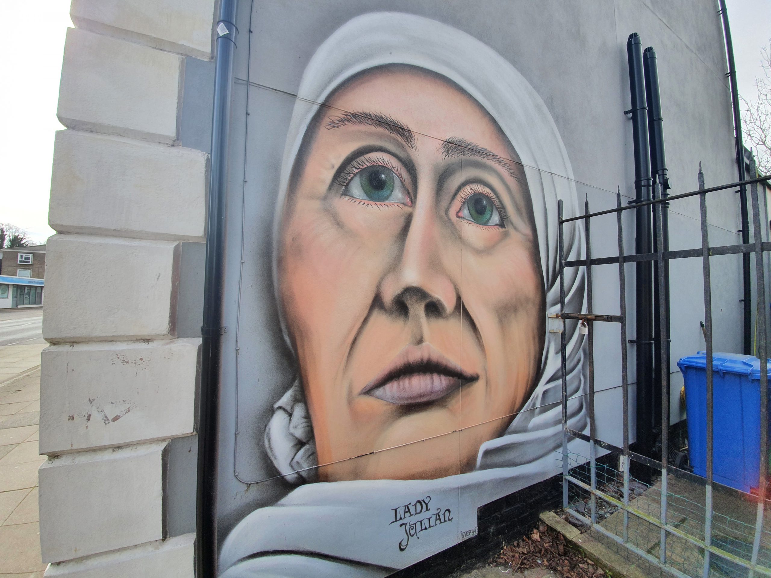 Some street art of St. Julian of Norwich.