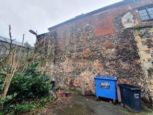 The rear wall of Monastery Street and there used to be residential properties which backed onto it.