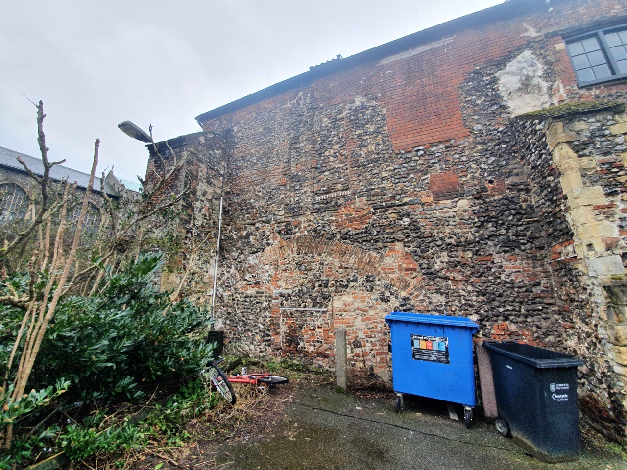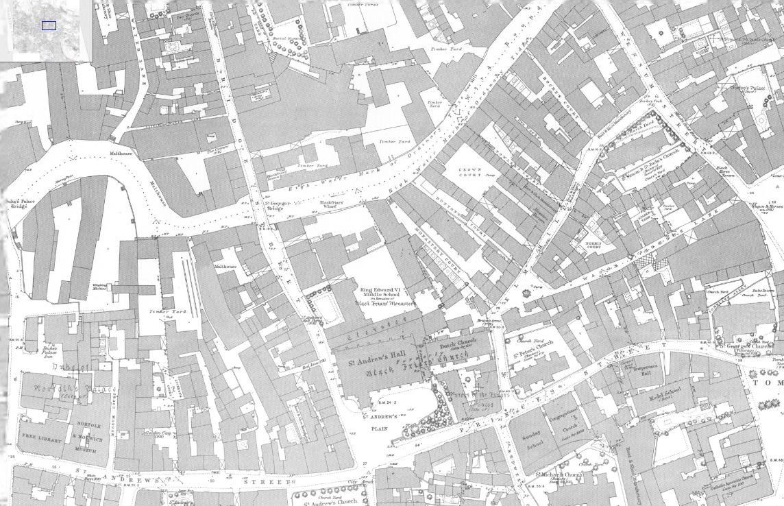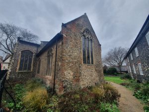 The parish boundary goes right through the middle of this building, better today known as the Halls and it’s where Norwich Beer Festival is held. It’s actually though two buildings, St. Andrew’s Hall on the left and the building off to the right is Blackfriars’ Hall. We ignored the former today, as it’s in a different parish, just looking at Blackfriars’ Hall which is named after the Dominican Order which took over here in 1307. There’s imagery of inside of Blackfriars’ Hall on their official web-site.