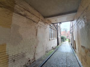 This is the remains of Towler’s Court which connects from the river to Elm Hill, with the buildings here being demolished as part of the 1920s slum clearances.