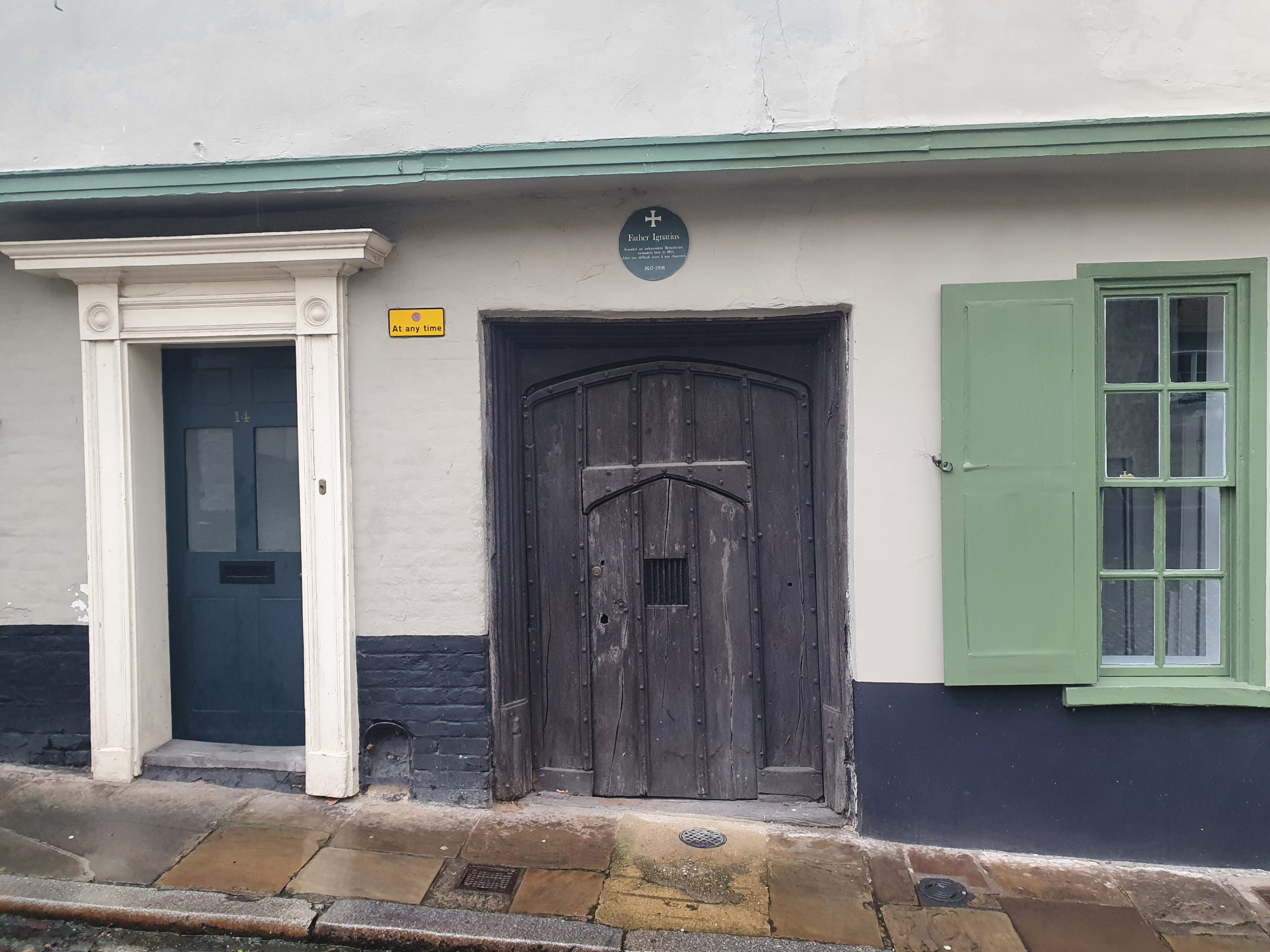 An old doorway with a plaque commemorating the life of Father Ignatius (1837-1908) who was an Anglican Benedictine monk who wanted to bring back the monastery system. He purchased this house on Elm Hill, definitely suitably located given he could see Blackfriars’ Hall from his window, which must have been a constant inspiration. George Plunkett has a photo from 1935 of this doorway.