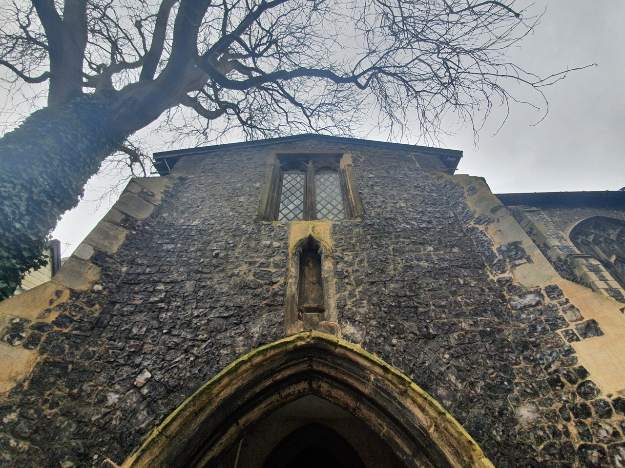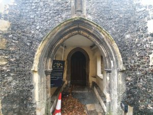 Inside the porch, which can’t be accessed and I took this photo through the gate…. I will at some point hopefully find my photos of when I visited this church during the Flintspiration weekend in 2017. There are some photos of how the church looked on the web-site of Hungate Medieval Art.