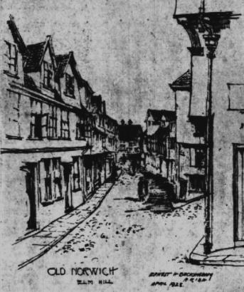 Just weeks later, the city said that it was reversing its decision and the City Engineer was drawing up plans to restore the frontage of the buildings along Elm Hill, working with William Weir, the architect to the Society for the Preservation of Ancient Buildings.