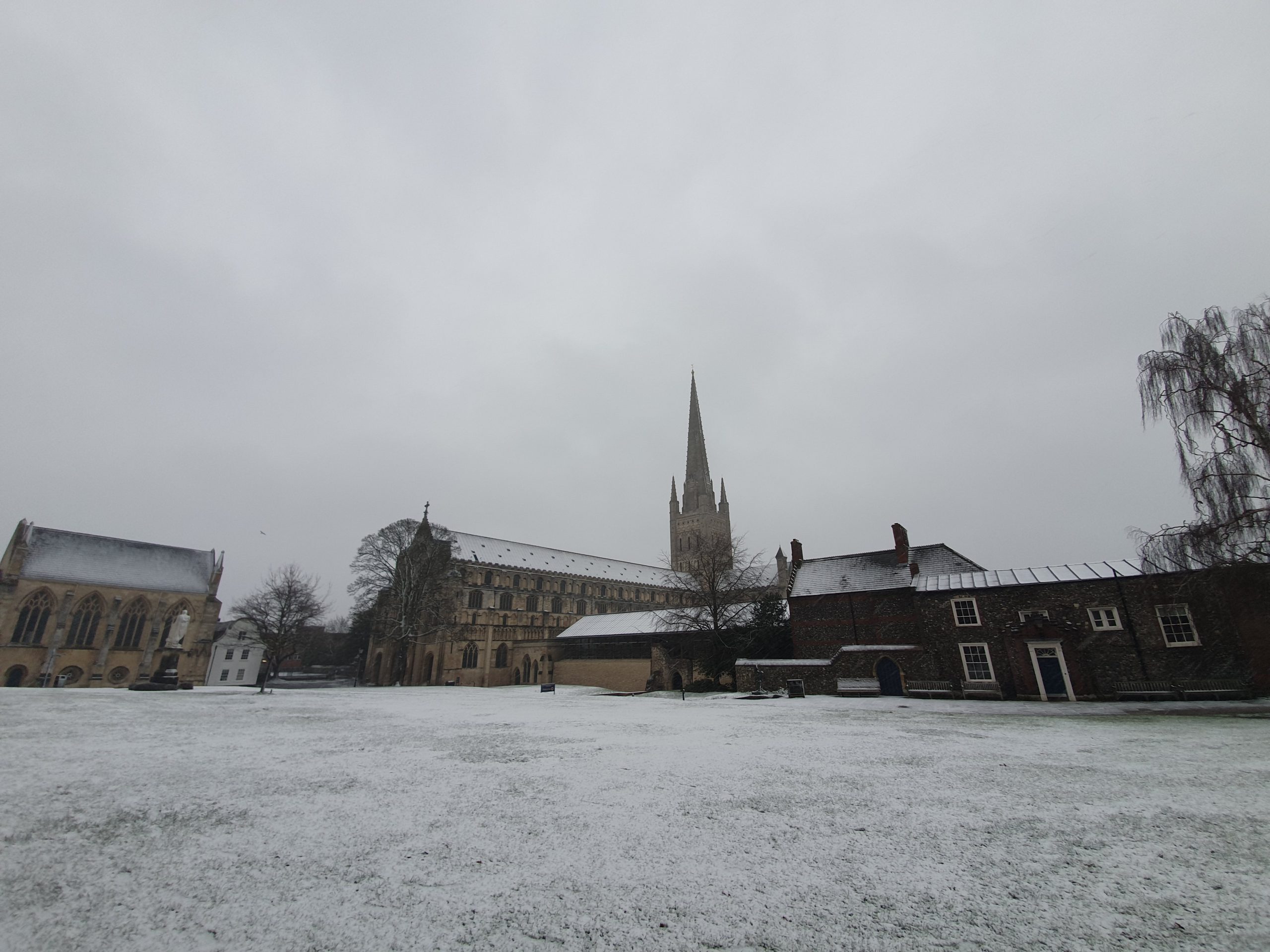I can’t recall the last time that I was in Norwich when it was snowing, but overnight there was a reasonable covering over the city. This morning it continued to snow and so it looks like it might be here for a little while yet. This post is mostly photos, a couple of Norwich Cathedral and the rest from Mousehold Heath which felt positively Austrian in the snow….. There were already a few people tobogganing at Mousehold and I imagine there will be many more children there this afternoon.
