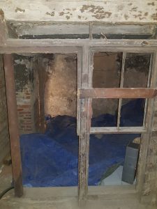 Down one flight of stairs, this is the old first floor of the property, the windows are of the room where the weaving would once have taken place. This is the back of the property, which would have overlooked the courtyard.