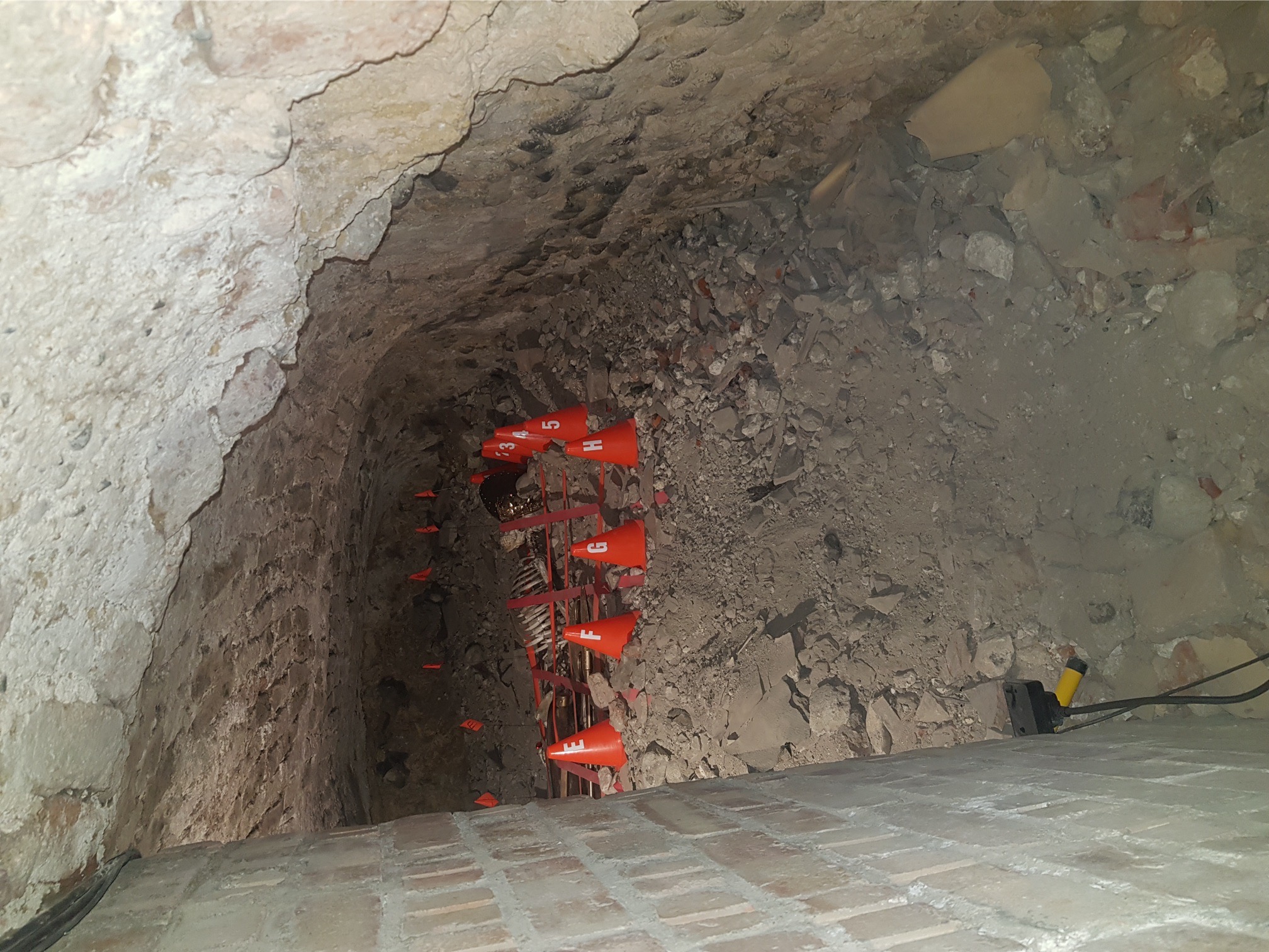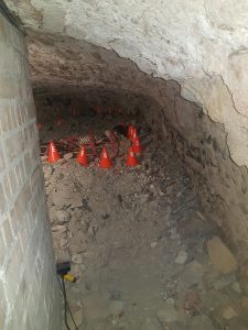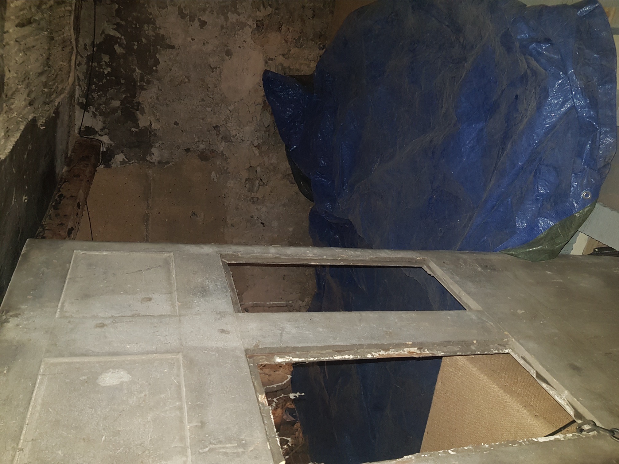 A separate undercroft area under a different section of the building. The strange collection of items are related to the escape rooms which have recently been opened as an attraction.