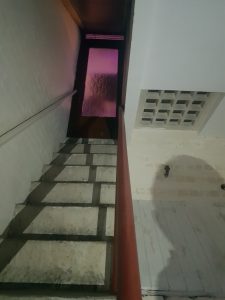 Two flights of stairs down from where we started and this is the old ground floor of the house that was built here. The window frame is more recent, but is in the same place as the original window.