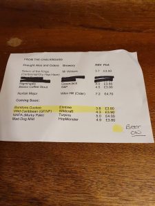 The pub was busier than this for much of our stay, but I took the photo of the back bar when people weren’t in it, that makes things easier. The whole health issue was handled well, table service was offered, beer menus at the table, extra drinks offered pro-actively, payment taken at the table, everything clearly laid out. Marvellous, all very professional.
