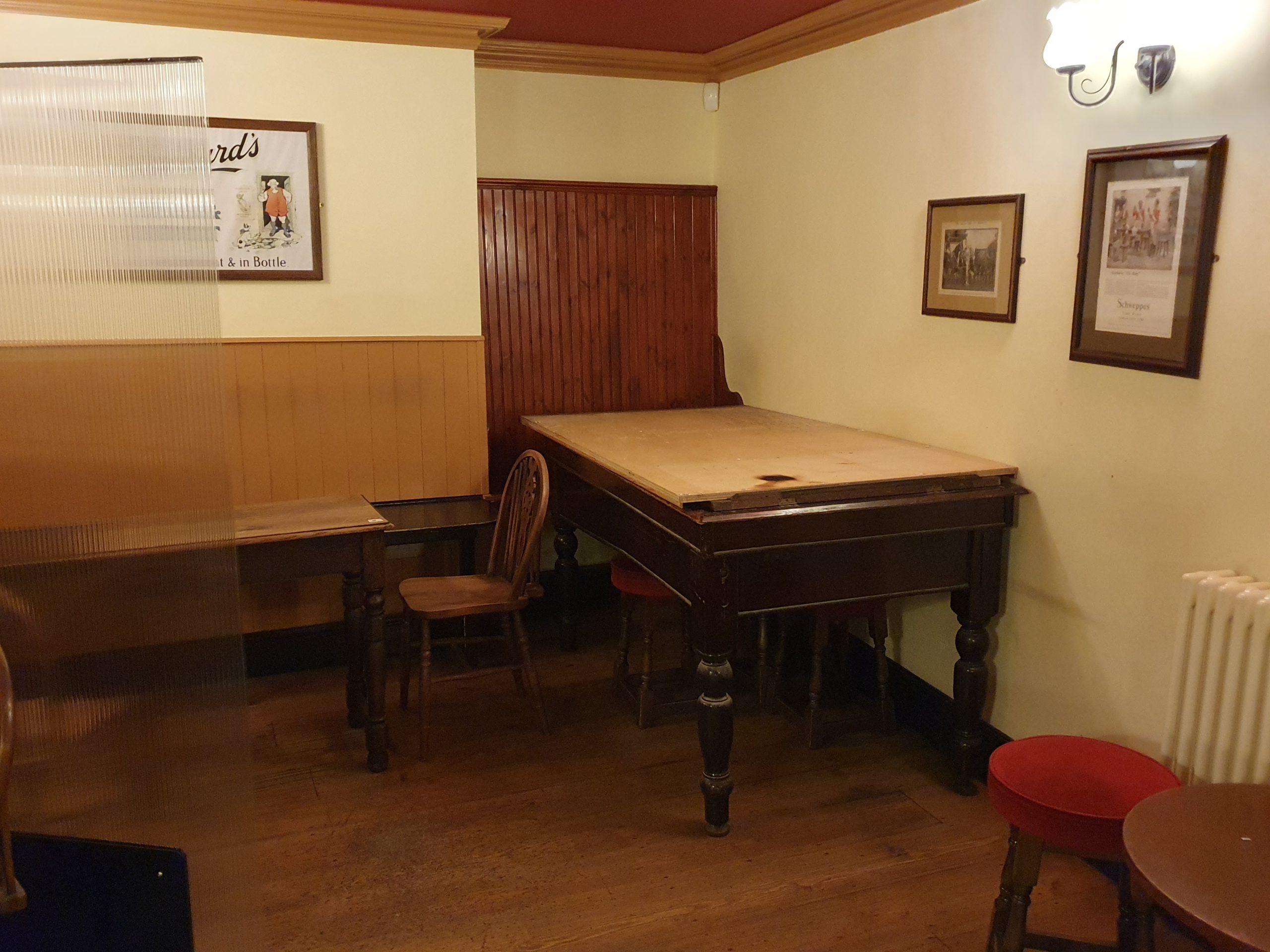 Not that the pub has much choice in the matter, but it’s sad to see the bar billiards table like that.
