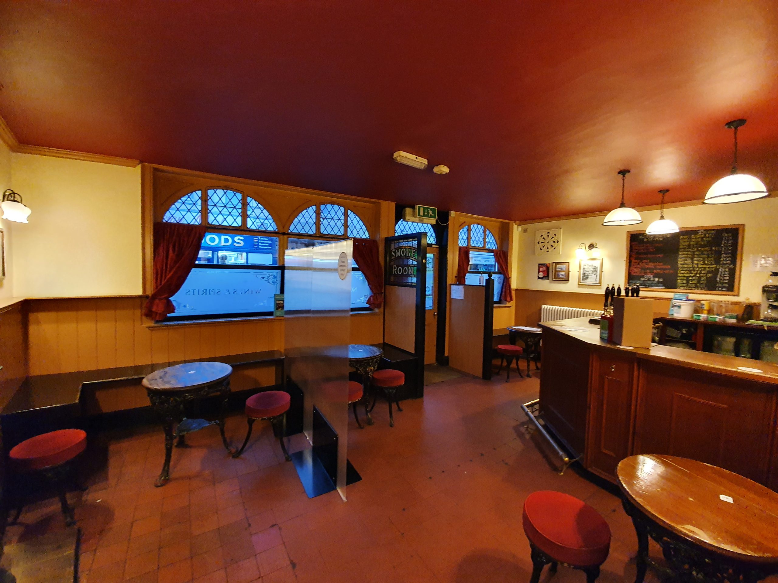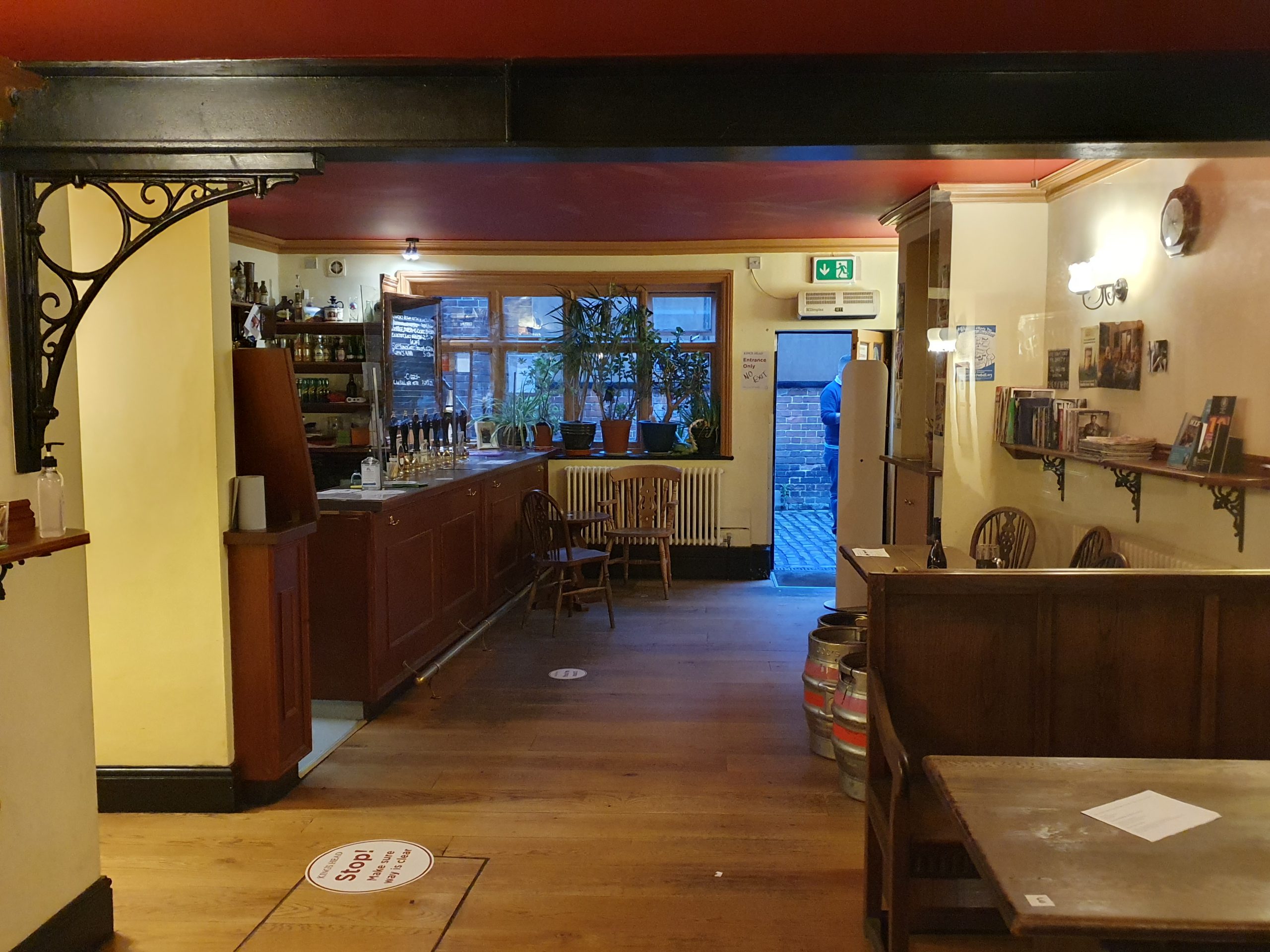 The front bar, feeling quite empty and there’s now a one-way system operating throughout.