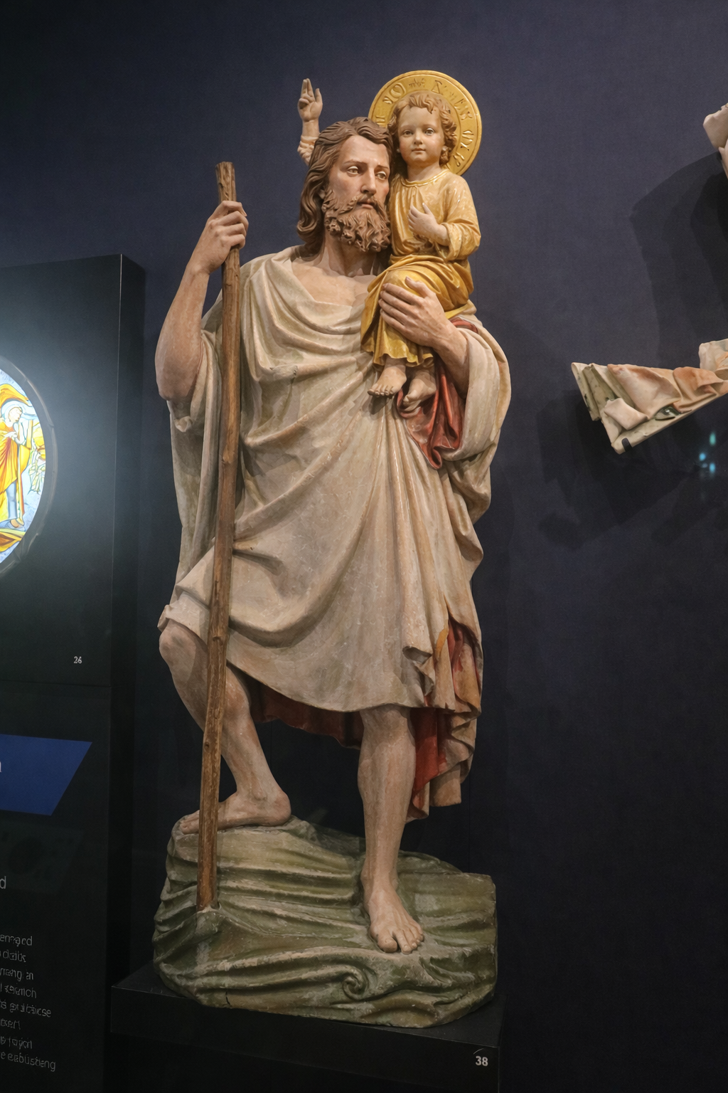 One of the churches that he wanted to demolish was St. Laurence’s Church on St. Benedict’s Street, which is also where this defaced statue was found discarded in the porch. There’s enough of it remaining for it to be identified as a sculpture of St. Christopher carrying Jesus Christ across a river.