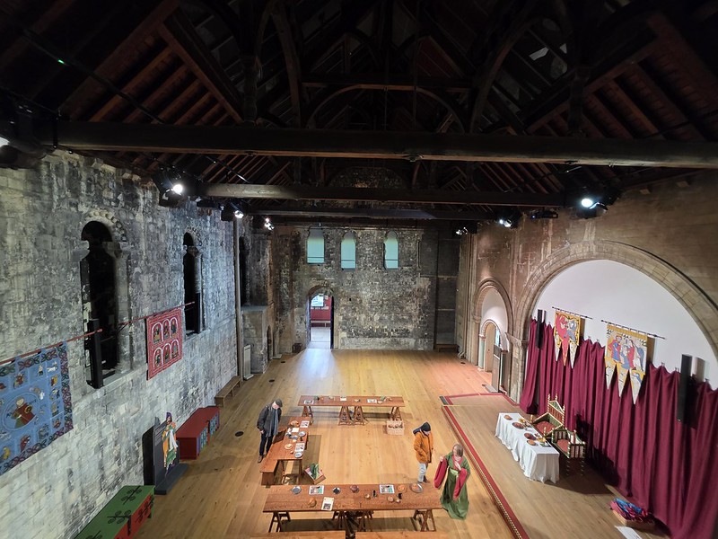 Looking down the mezzanine level gives an impression look at the work that has taken place. I’m struggling to buy into this, there’s the rather beautiful stonework of the castle keep on the left and then some really rather basic looking interior decor. It’s meant to be set up for a large feast, but it more looks to me like wagamama after they’ve cleared 90% of the seating out. But, each to their own, others might be inspired by the photos.