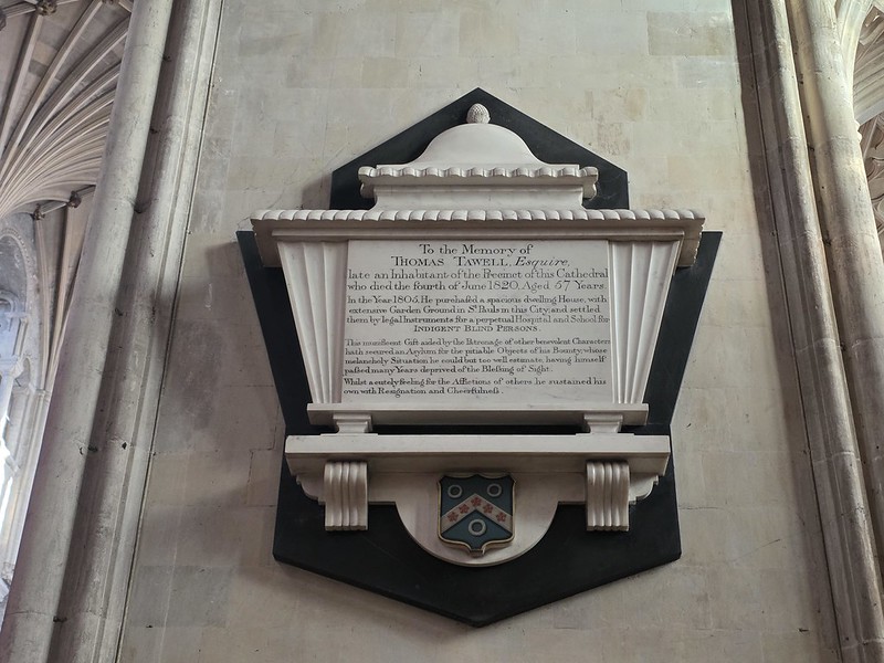 “To the Memory of THOMAS TAWELL, Esquire, late an INHABITANT of the Precinct of this Cathedral who died the fourth of June 1820, Aged 57 Years.