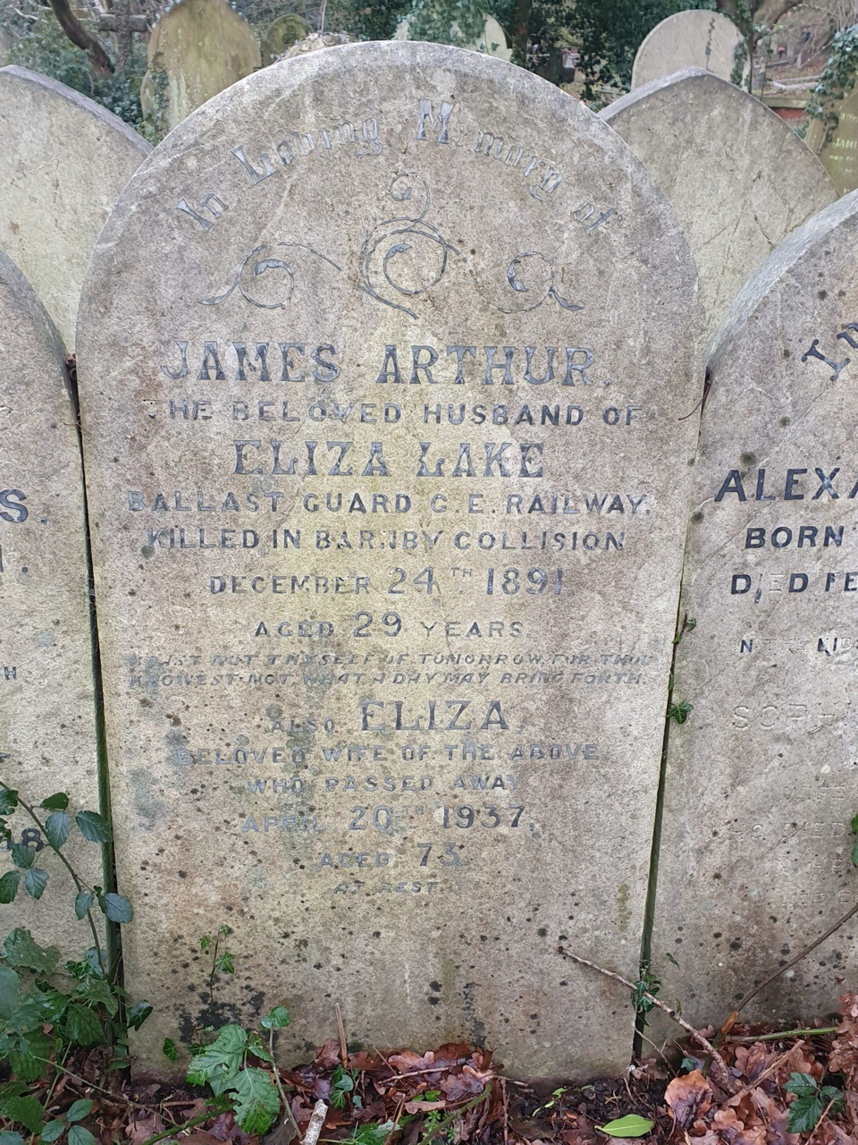 Tragedy then hit the couple, and this is also mentioned on the gravestone itself, when there here was a train crash on 24 December 1891. It was reported in the local press on 28 December 1891 that three men had been killed, Walter Forster Mallett (aged 21, an engine fitter from Lowestoft), Harry John Reed (aged 26, a fireman from Lowestoft) and James Arthur Lake (aged 28, a guard from Norwich). There were over thirty other people injured and the inquest was adjourned until early January 1892.