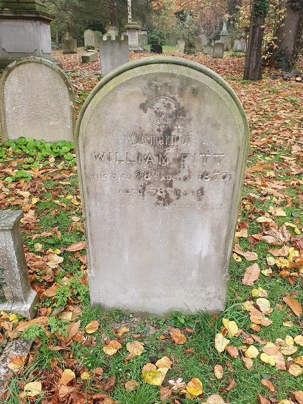 This is quite a simple gravestone, commemorating the life of William Fitt, who was born in 1822. Unfortunately, I’ve been able to find out very little about William, nor can I understand why his wife wasn’t listed on the gravestone.