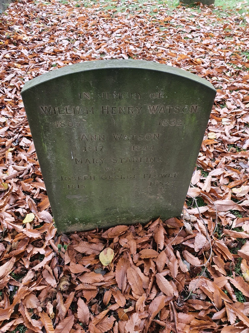 This would have been one of the first burials at Rosary Cemetery, William Henry Watson who lived from 1803 to 1832 and Ann Watson who lived from 1817 to 1844. William was also born into a non-conformist family, with the cemetery being one of the few options to the family at the time given those beliefs.