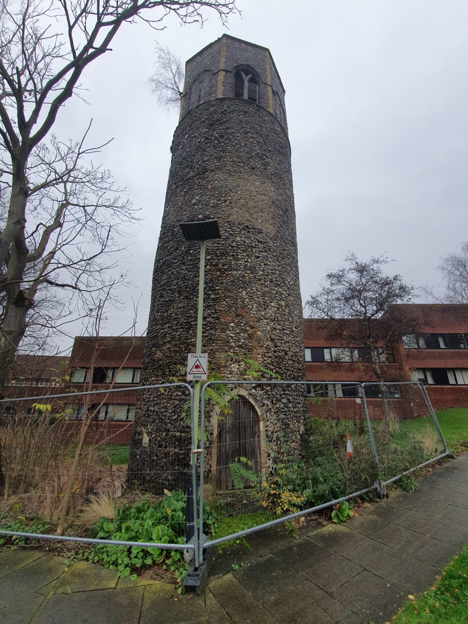 The tower has now been pretty much abandoned though, barriered off to prevent anyone getting near to it. This is an eleventh century tower (or possibly slightly later, the nave was from that date and the tower was likely built slightly after) of not inconsiderable importance and is rightly Grade I listed. There was a large archaeological investigation in 1972 when the housing was built here which meant that the area is well recorded. There was a font of note dating from 1320, although that was safely transferred to Erpingham Church as it escaped damage during the air raid bombing.