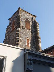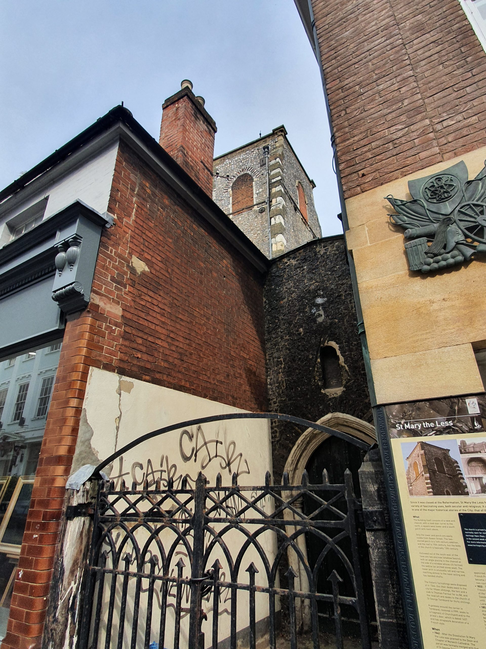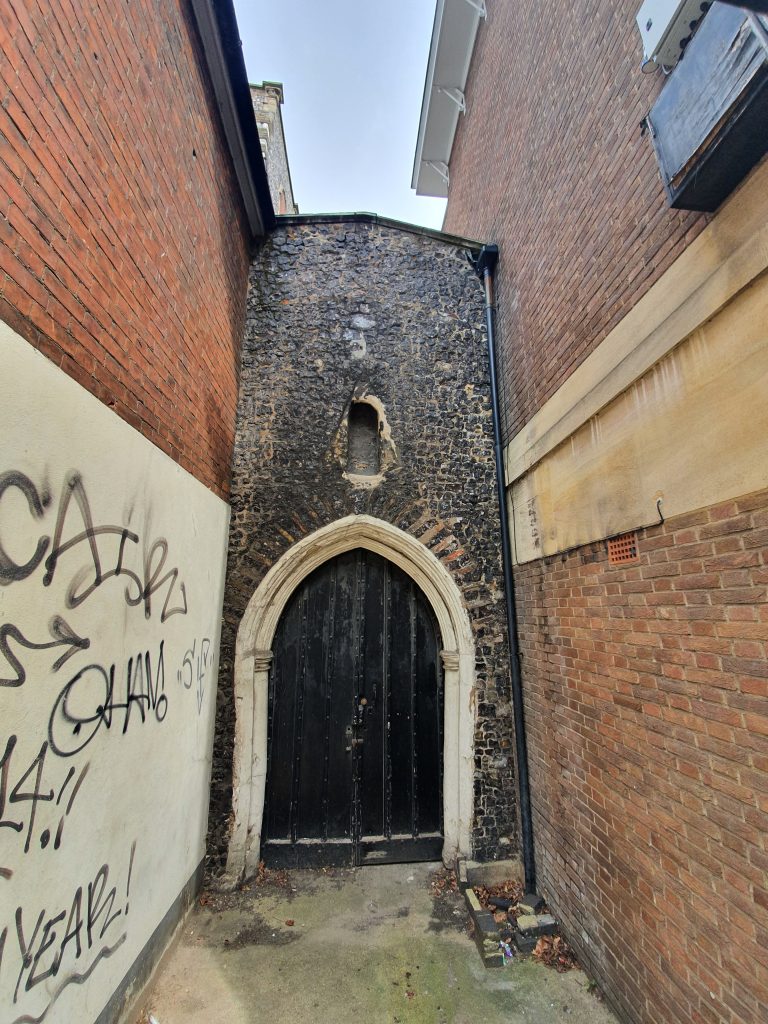 This is the only one of Norwich’s medieval churches, and the city has a lot, which I haven’t visited. It didn’t open on Flintspiration weekend a couple of years ago when the others did, so it’s something of a challenge to see inside. The heritage bodies have struggled to get their representatives inside and it was last opened to the public back in 2010. There is though an information board, visible above, which draws attention to the gateway, as otherwise, it’d be easy to miss it.