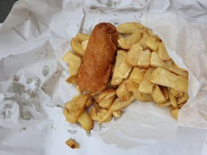 The service was polite and efficient, with the social distancing system being a little unclear (over half the customers got it wrong), but the staff were verbally explaining it. The price for battered sausage and small chips was £2.60, which is below average and the portion of chips was substantial. There was a moderate customer service failing in that they wrapped the whole lot up, even though I wanted it unwrapped, and didn’t offer salt and vinegar.