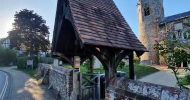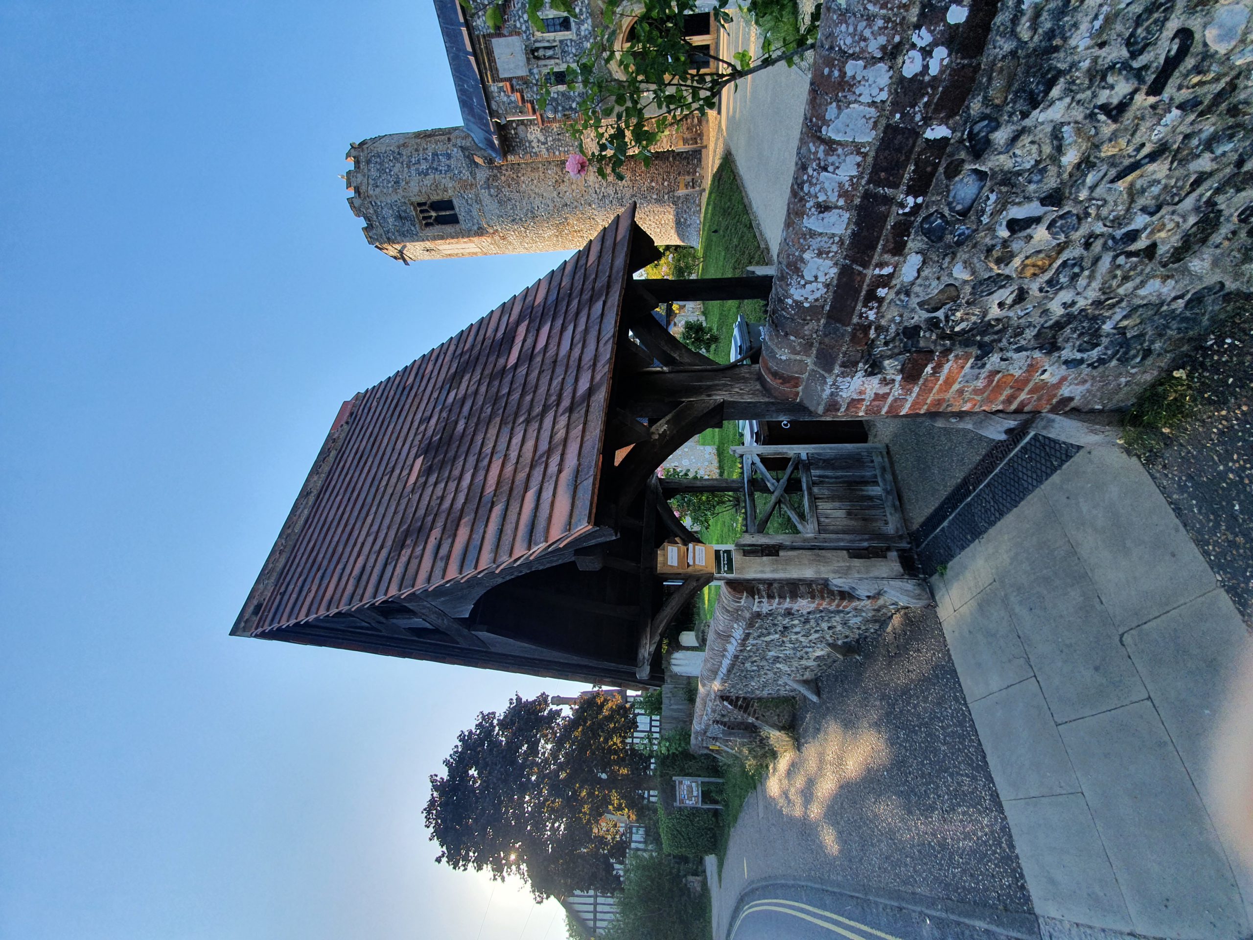 The church’s quite modern lychgate doesn’t really seem big enough to shield a coffin in the rain, so I assume this is more decorative than functional.
