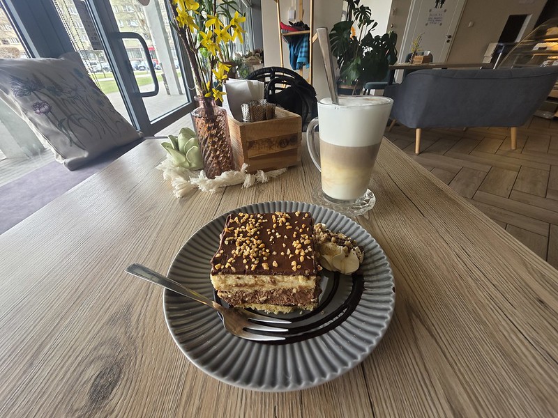 The prices were towards the higher end of the scale for Poland, the coffee and cake was £7, but the quality was high and the surroundings were comfortable and inviting. And I was able to people watch for half an hour, well, and look at my phone as well obviously.