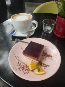 The service was pleasant and polite, with the staff member speaking English, as my Polish didn’t really extend to ordering a cake that I couldn’t actually even describe in English either. The whole environment was relaxing and peaceful, all very appropriate for its location near to the library. The cost for the drink and cake was just over £3, which seems to be in keeping with what I’d expect for Poland.