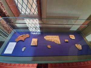 Oxburgh Hall is going through a substantial restoration programme at the moment, caused by things falling off the building, which means that they’ve been lifting some floorboards. Their discoveries might look mundane, but there’s something quite compelling about the random things that have been found. So far, some masonry, half a plate, a paper money bag, bits of newspaper and a cigarette box.