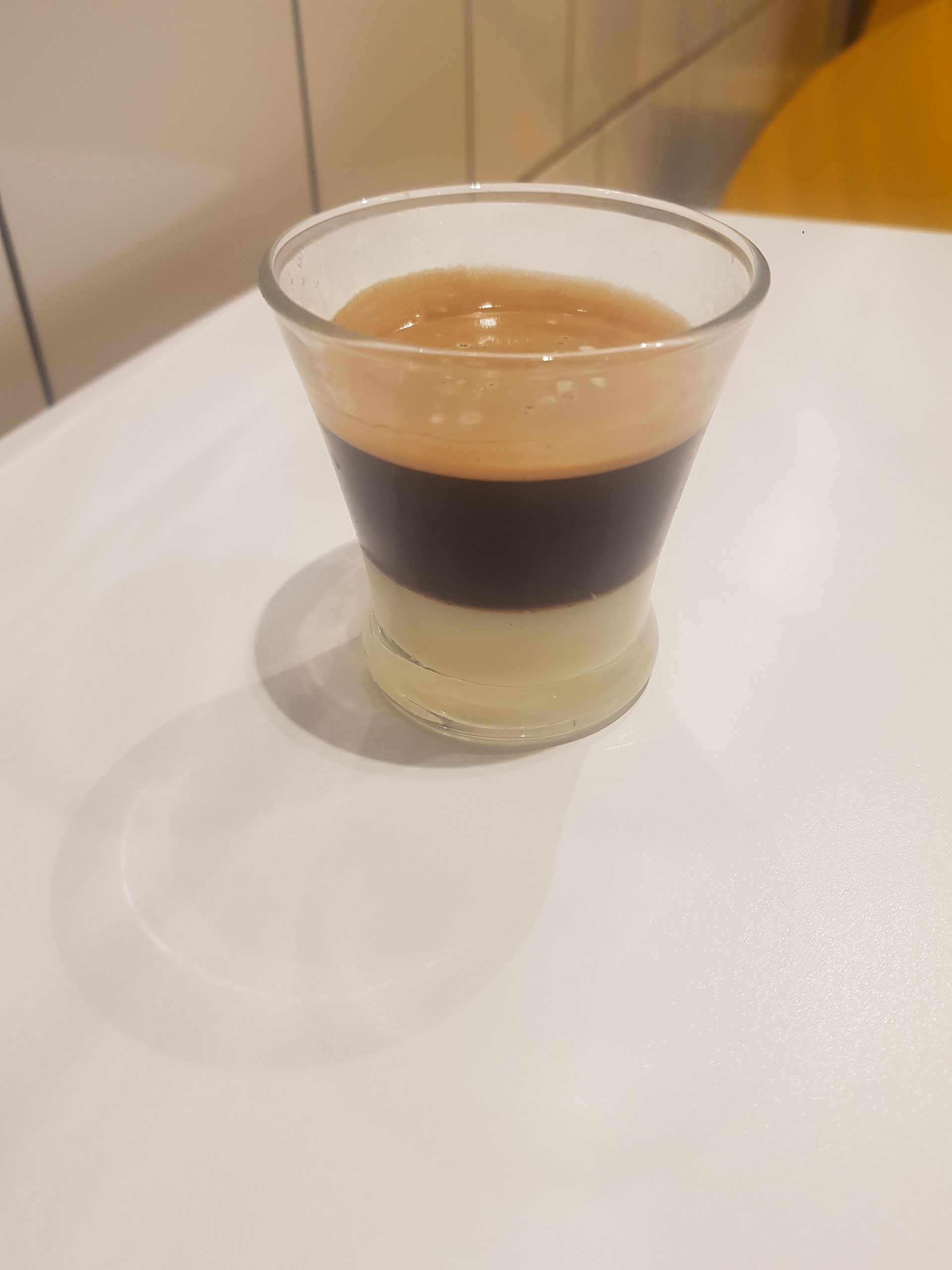 And a layered coffee. Probably not for the tastes of young Dylan and Leon (not until Dylan is ten), but what is apparently condensed milk at the bottom and then some coffee arrangement above that I don’t understand. It’s particularly lovely. It looks pretty though. I nearly threw the glass in the bin thinking it was plastic, but I think it is actually glass…. It came with a proper teaspoon as well, very exotic for McDonald’s.