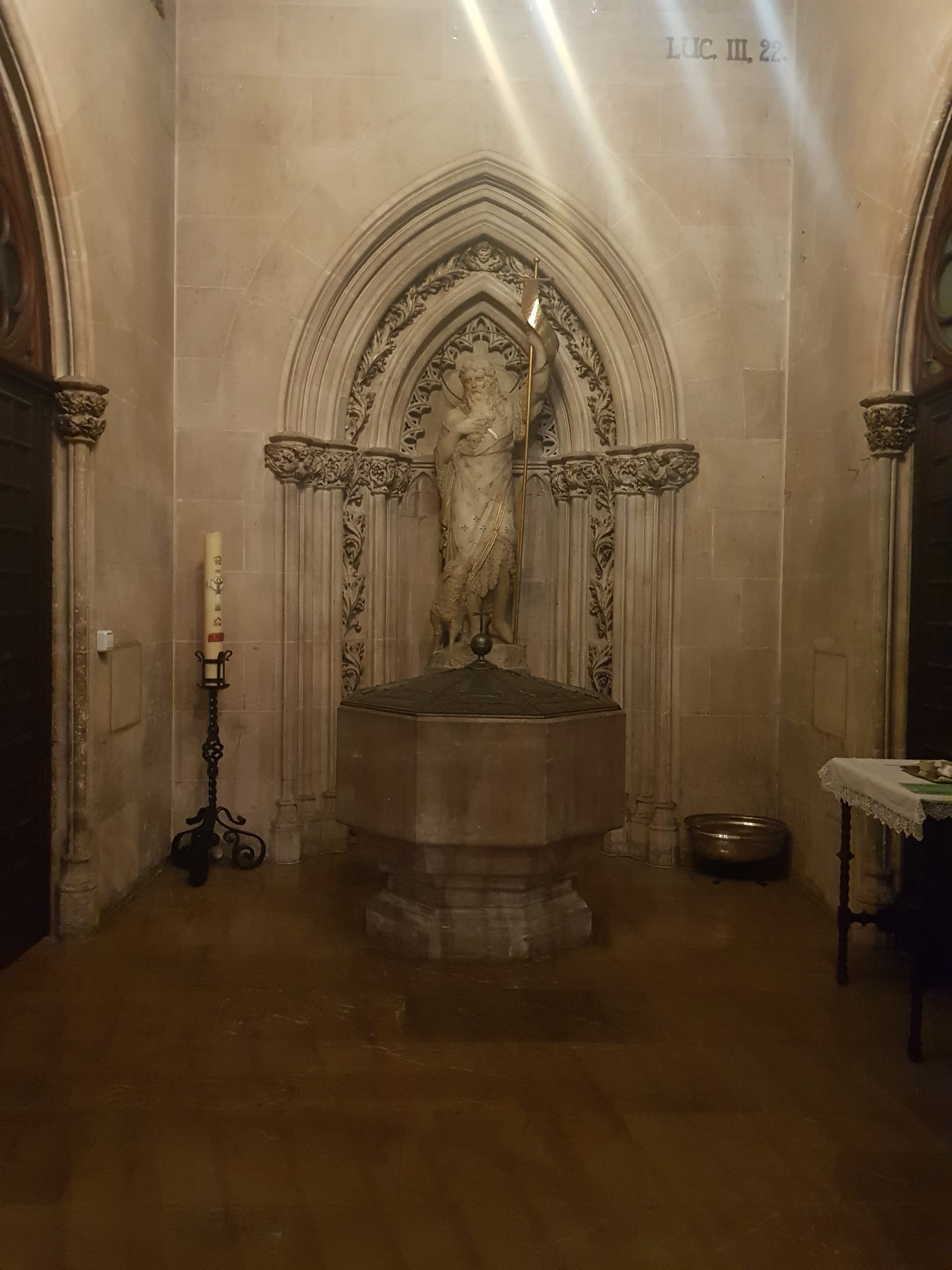 The baptistry and the font was moved about quite a bit whilst they were constructing the church, before it ended up here in 1910.
