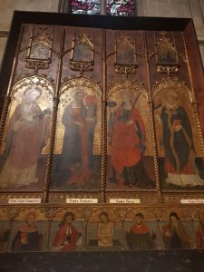 This reredo dates from the early fifteenth century and I thought that it was one of the highlights of the church’s collection. The figures are St. John the Evangelist, St. Lucia of Siracusa (there’s an island named after her), St. Barbara of Asia Minor and St. Blasius of Armenia. The chapel that this is now located in was once a family tomb, but unfortunately for that family, the church decided to change its use.
