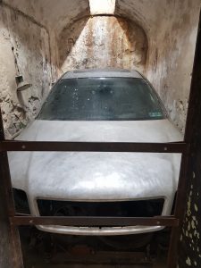 In some of the cells at the Eastern State Penitentiary there are art installations of various different kinds. Created by local artist Tyler Held, this is perhaps one of the most ambitious, as it involved getting an entire car into the cell. The car has been stripped down of any identity, which is the purpose behind the installation, it’s to show that prison life can strip the individual of their identity and individuality.