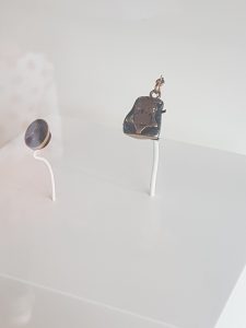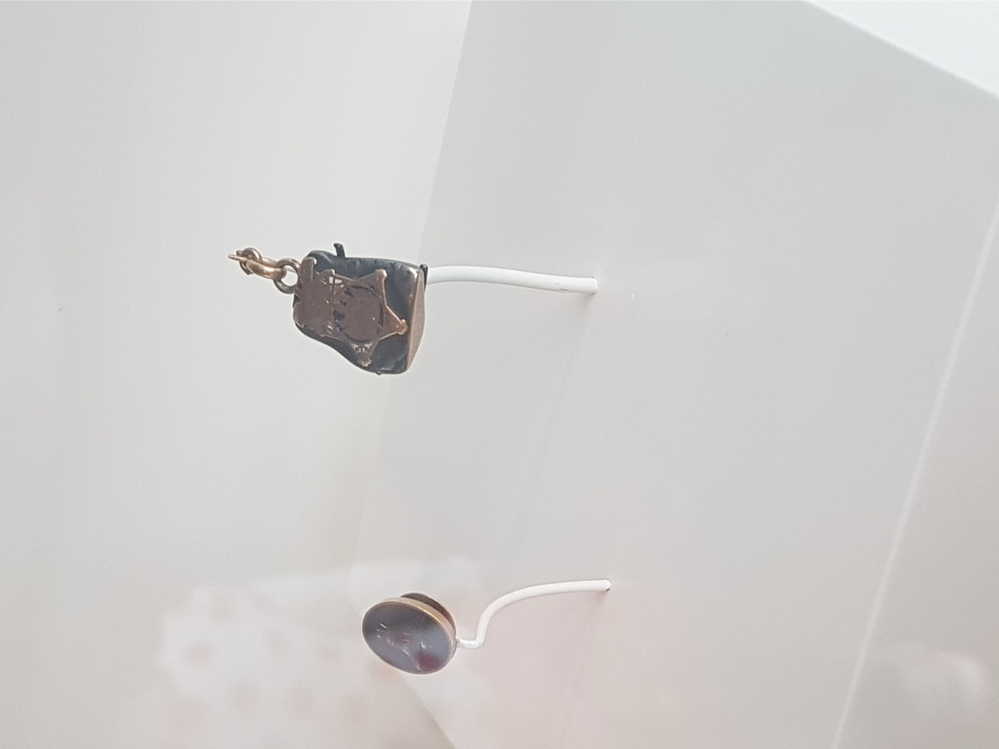 Two decorative items from the late nineteenth century, made from bits of the bell that some hooligan had chipped off.